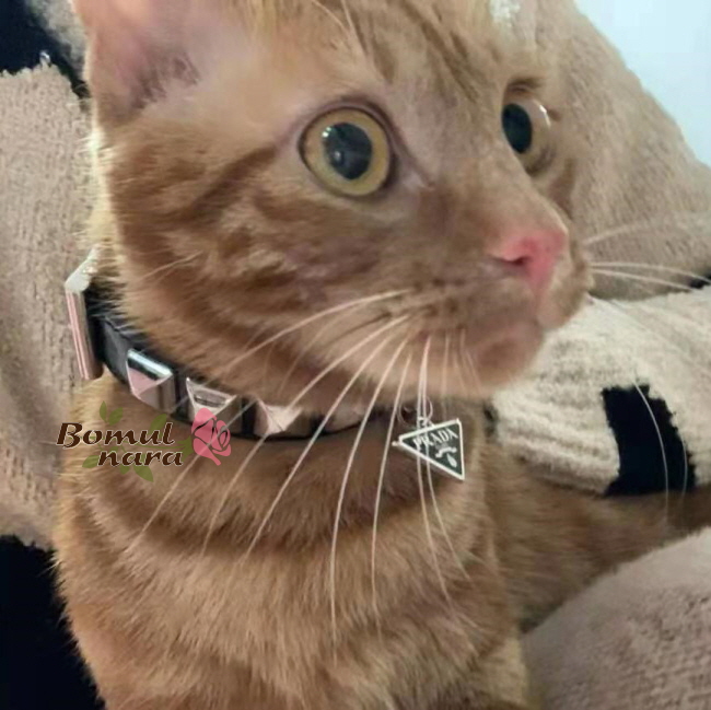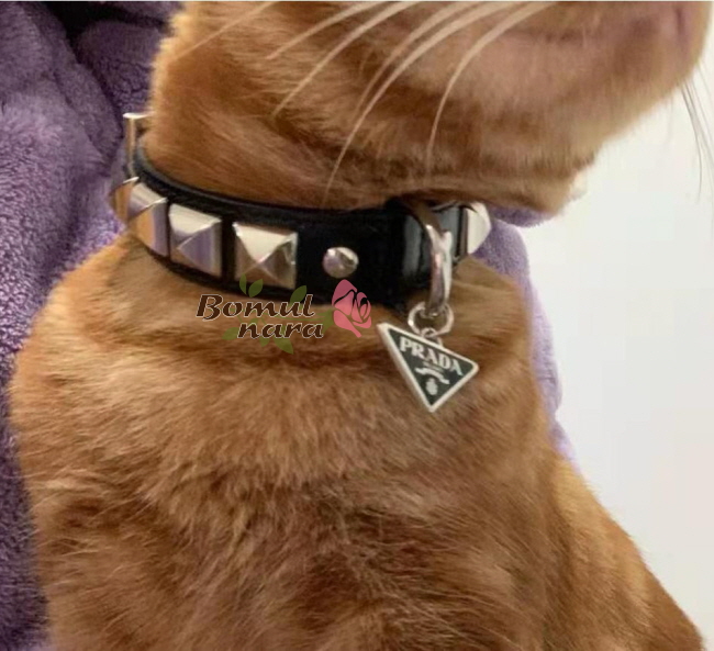 메탈 스터드와 메탈 트라이앵글 로고로 장식한 반려동물