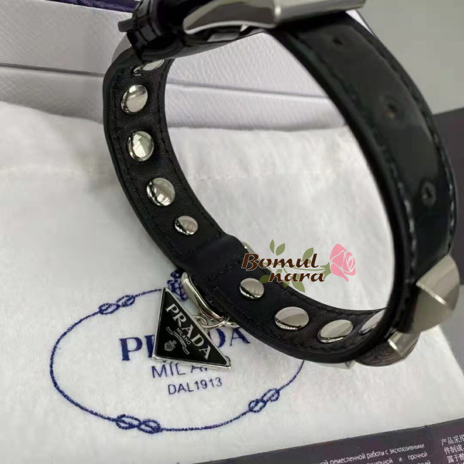 PRADA-2YC014 프라다 블랙 브러쉬드 가죽 반려 동물 목줄 Large 가격 : 200,000원