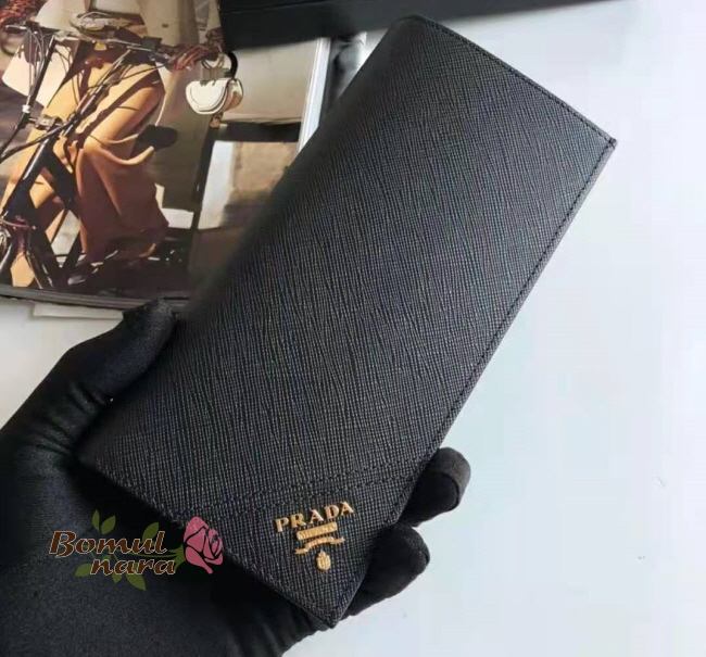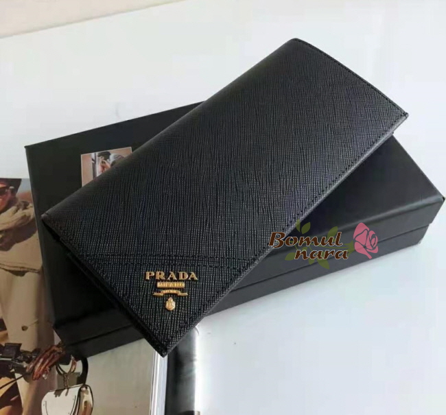 [스페셜오더]PRADA-2MV836 프라다 블랙 사피아노 골드 메탈 로고 장지갑