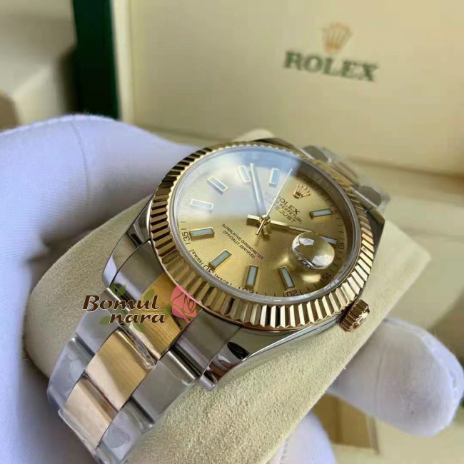 ★[正品완벽재현]ROLEX-롤렉스 데이트저스트 18K옐로우 골드 904L스틸 샴페인 다이얼 클래식 워치 41mm