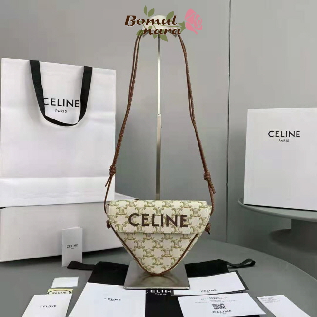 셀린느 레터링 로고가 크게 프린트되있고 삼각형모양