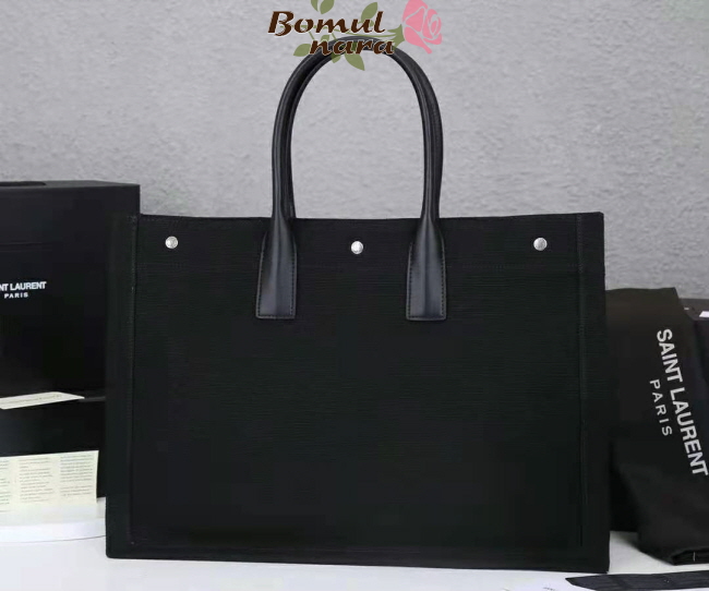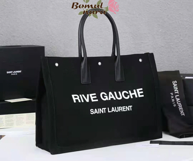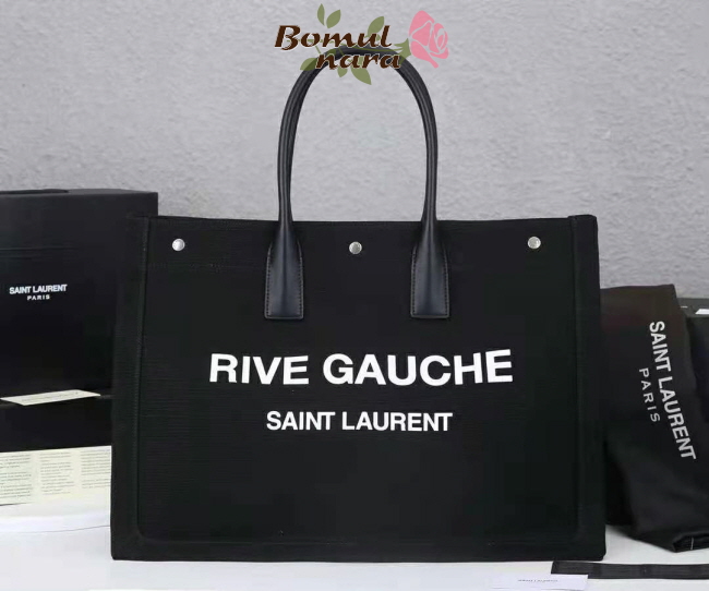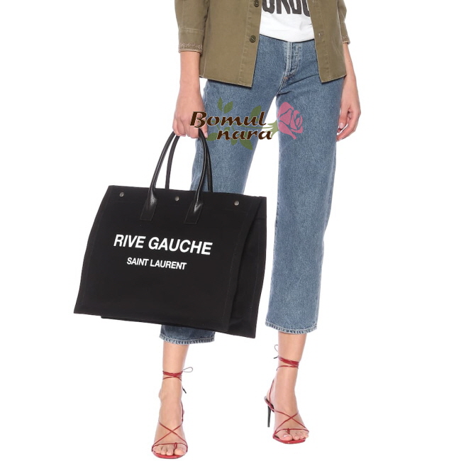 SAINT LAURENT-4992909 생 로랑 블랙 리브고쉬 프린트 캔버스 토트백