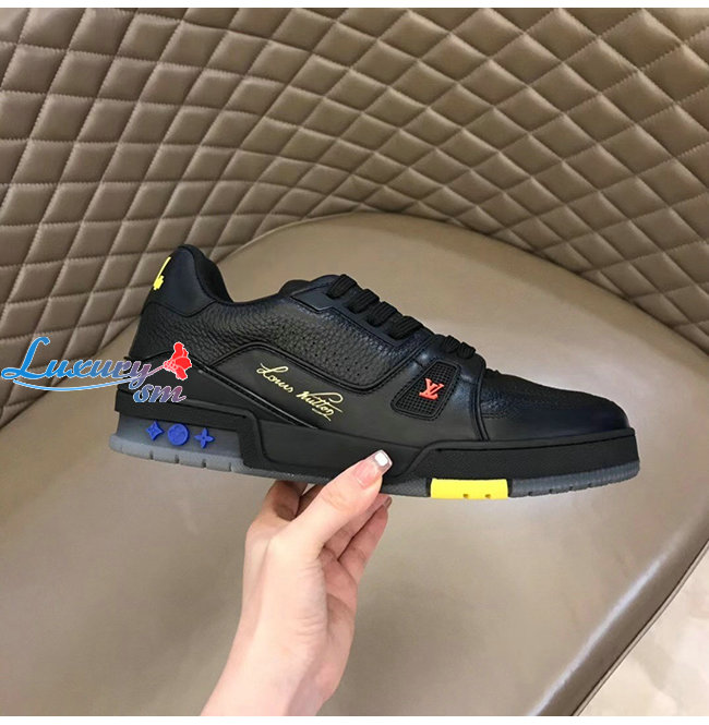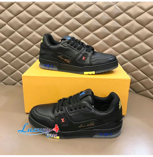 [스페셜오더]LOUIS VUITTON-1A8ZQD 루이비통 블랙 그레인 송아지 가죽 LV 트레이너 스니커즈