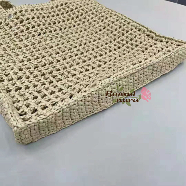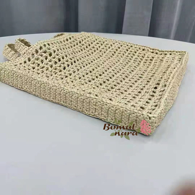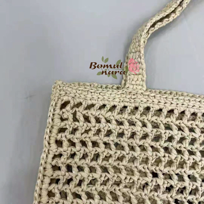 라피아로 제작한 부드러운 디자인의 토트 백.