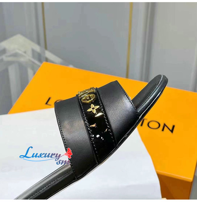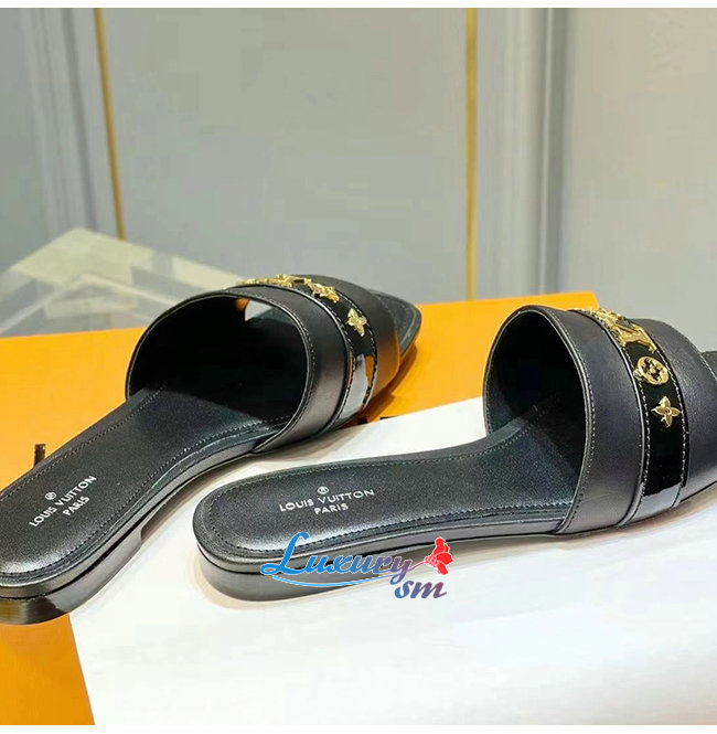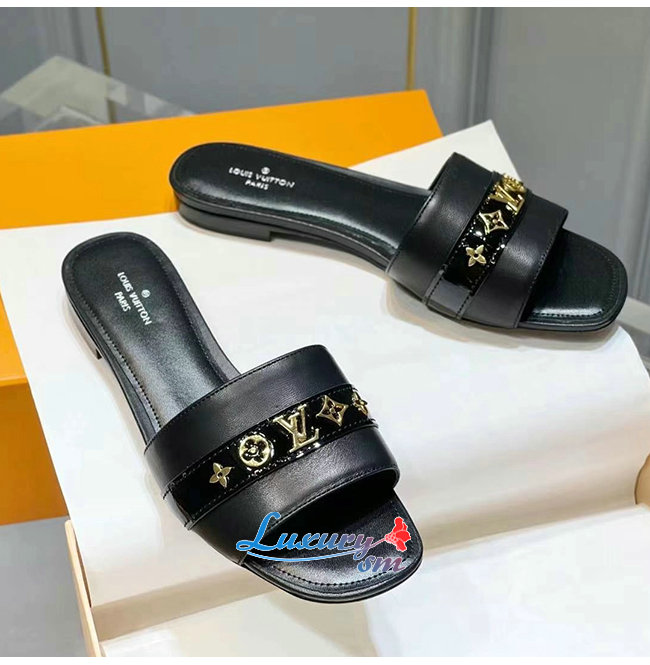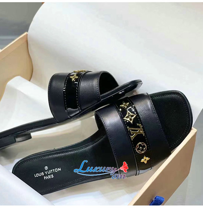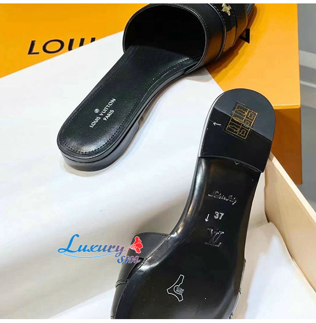 LOUIS VUITTON-1A8W2T 루이비통 블랙 송아지 가죽 리바이벌 플랫 뮬