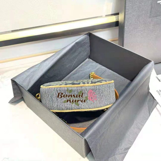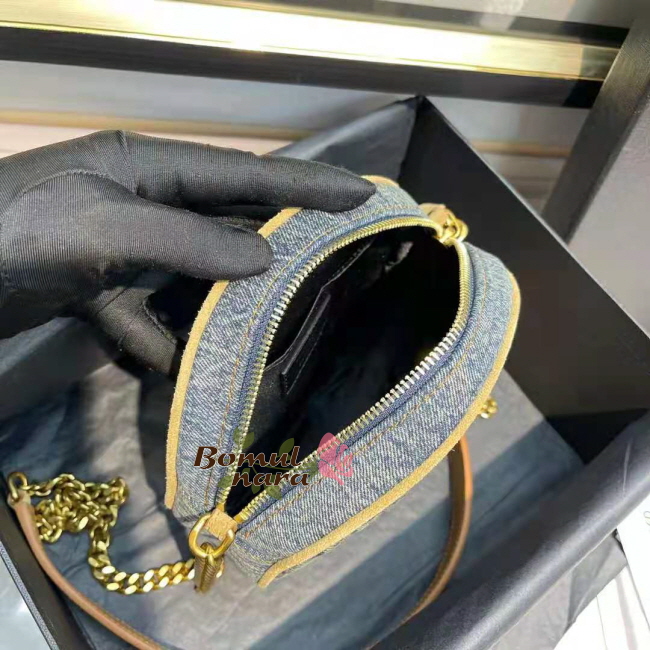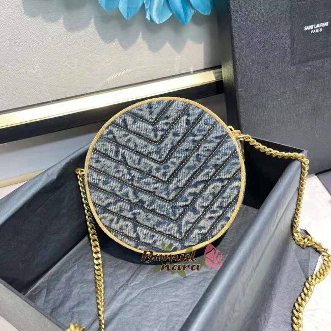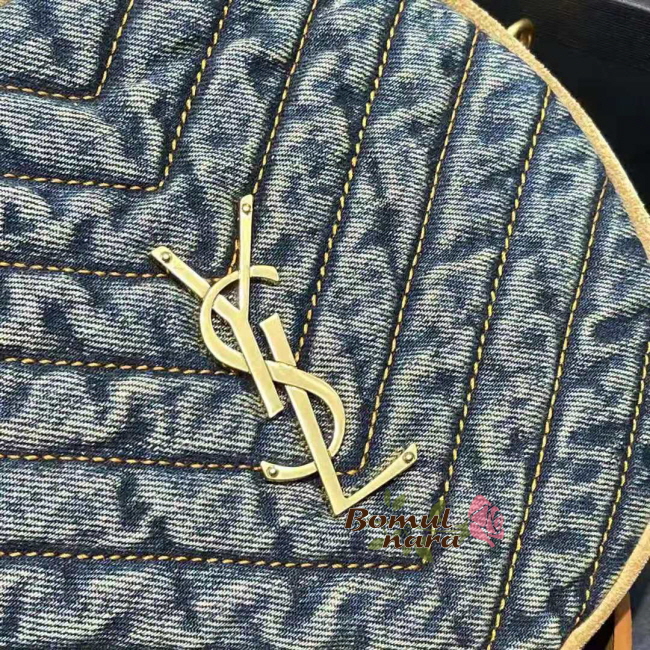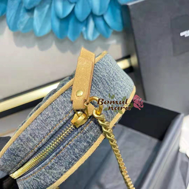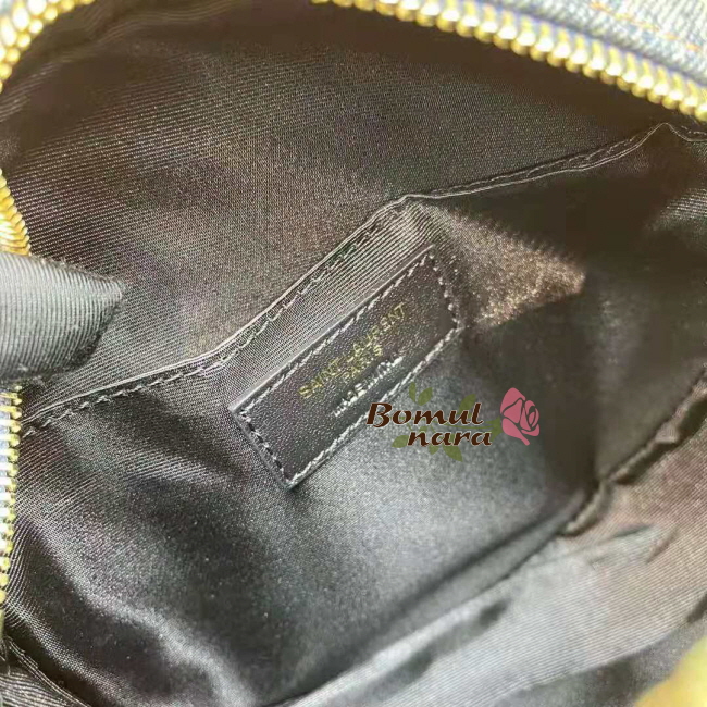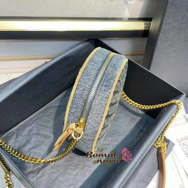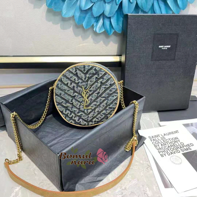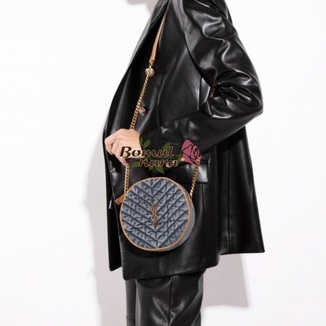 [스페셜오더]SAINT LAURENT-6104362 생 로랑 블루 쉐브론 퀼팅 데님 VINYLE 라운드 카메라 백