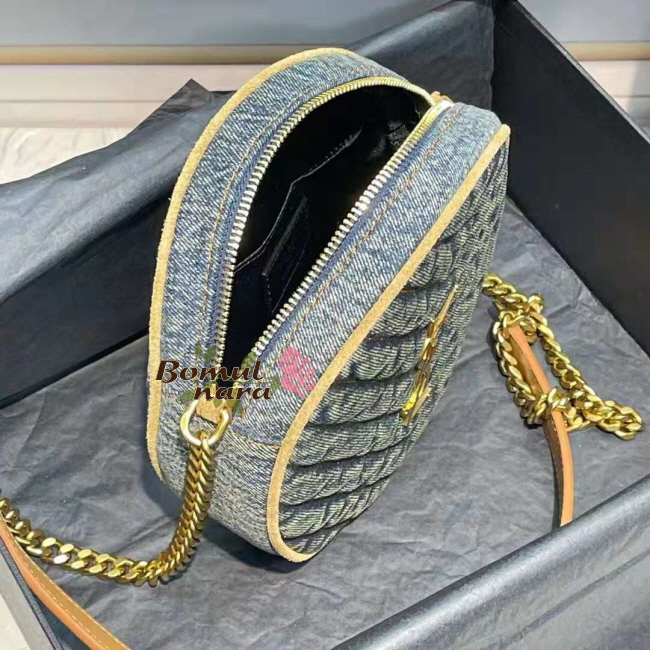 [스페셜오더]SAINT LAURENT-610436 생 로랑 블루 쉐브론 퀼팅 데님 VINYLE 라운드 카메라 백