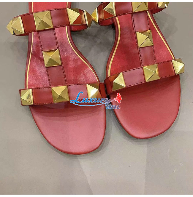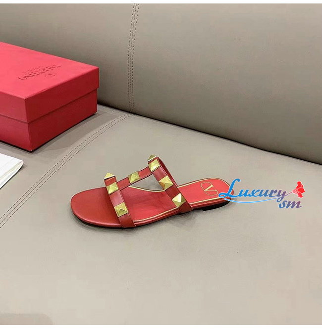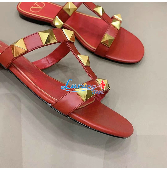 VALENTINO-WW2S0BU 발렌티노 레드 송아지 가죽 ROMAN STUD 플랫 슬라이드 샌들 여성용