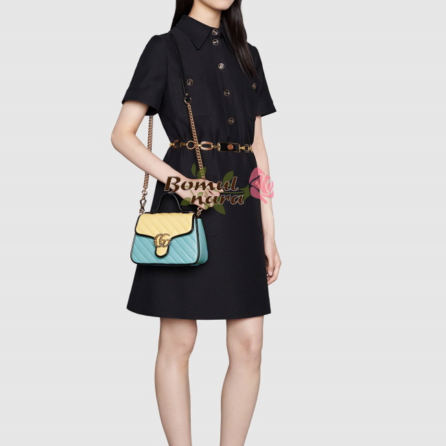 [스페셜오더]GUCCI-583571 8277 구찌 GG 마몽 블랙 사선형 마틀라세 가죽 미니 탑 핸들백 가격 : 340,000원