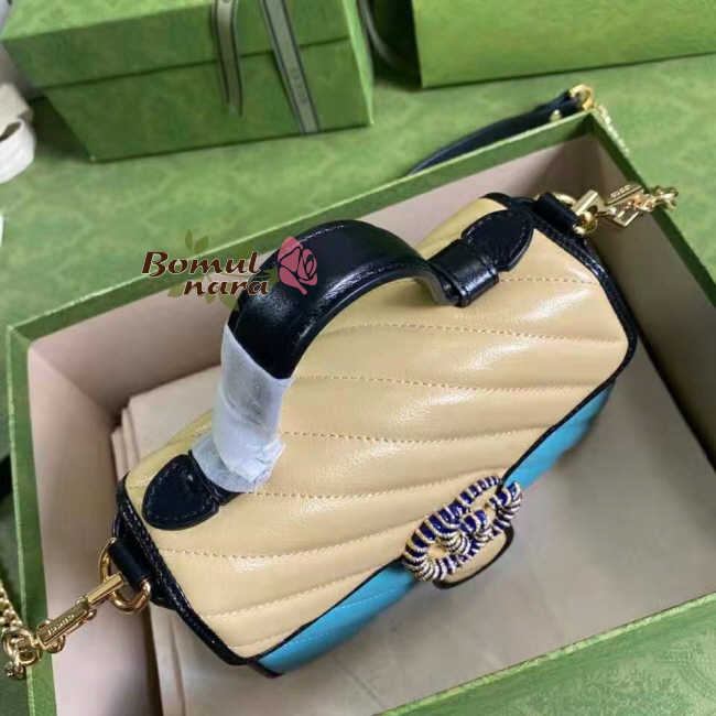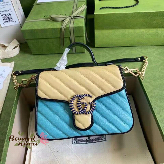 [스페셜오더]GUCCI-583571 4992 구찌 버터&파스텔 블루 GG 마몽 미니 탑 핸들 백