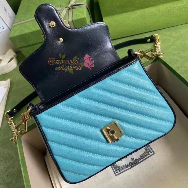 [스페셜오더]GUCCI-583571 4186 구찌 GG 마몽 블루 마틀라세 미니 탑 핸들백 가격 : 340,000원