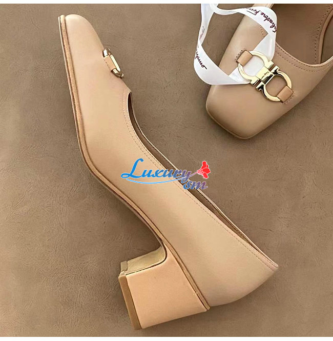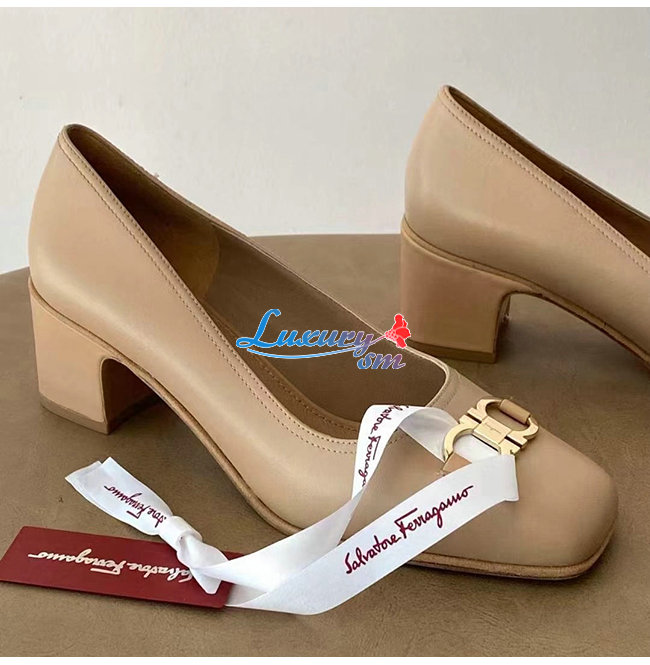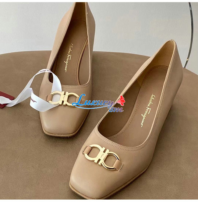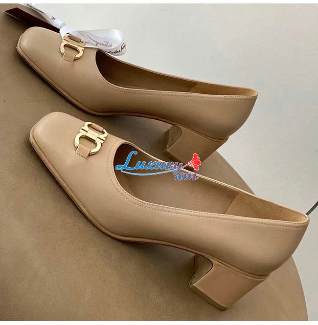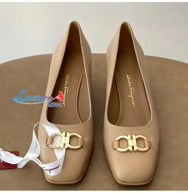 Ferragamo-01R378 페라가모 베이지 카프스킨 꼬미소 펌프스