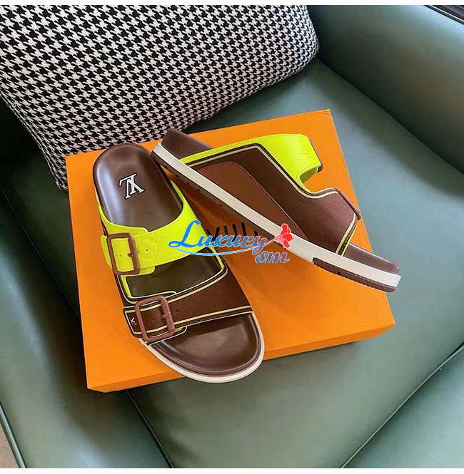 LOUIS VUITTON-1A8ZS9 루이비통 옐로우 스웨이드 LV 트레이너 뮬