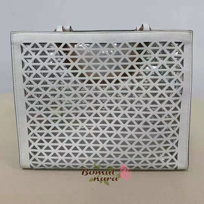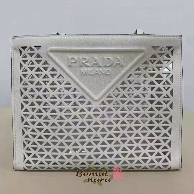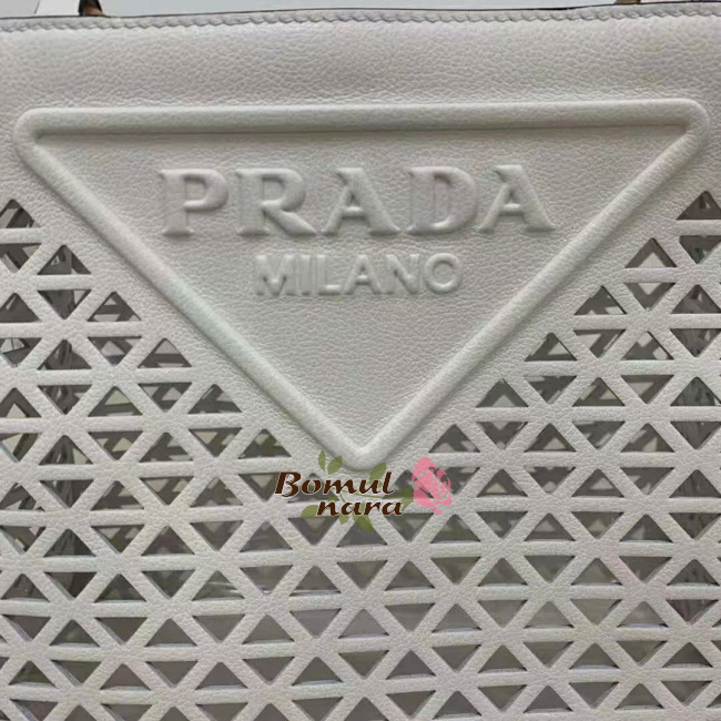 [스페셜오더]PRADA-1BG405 프라다 화이트 트라이앵글 로고 아일릿 탑 핸들 백