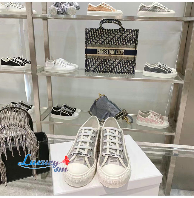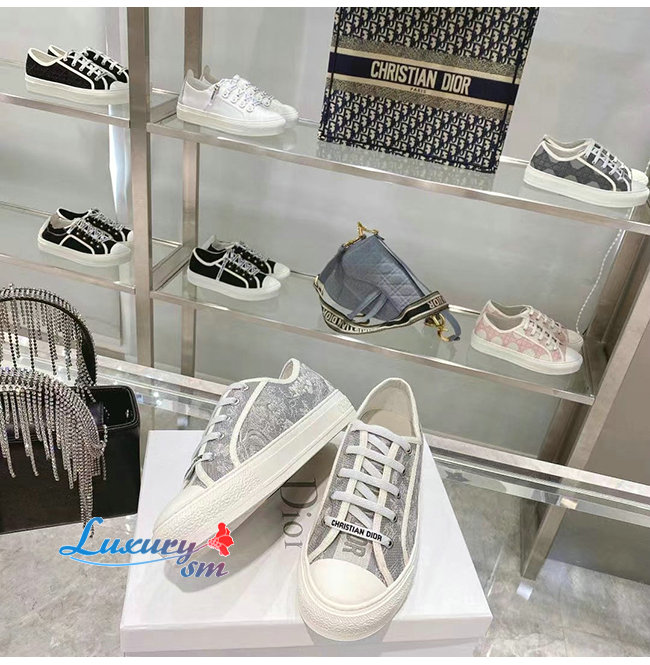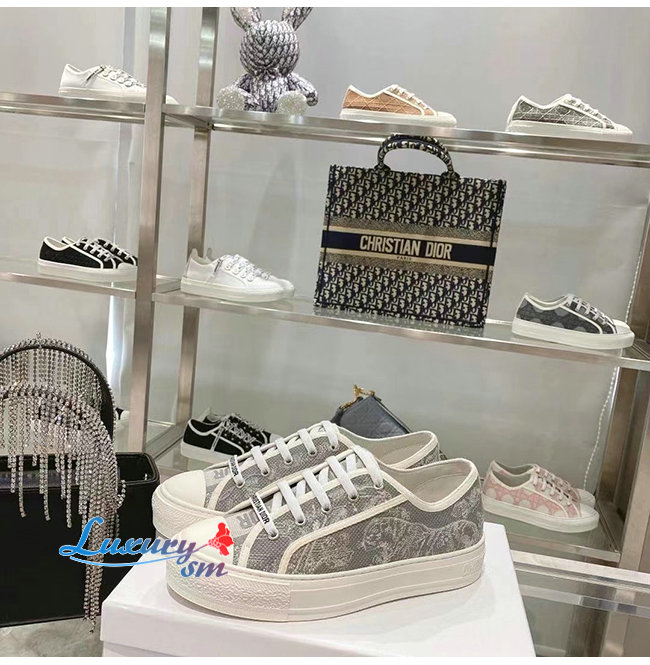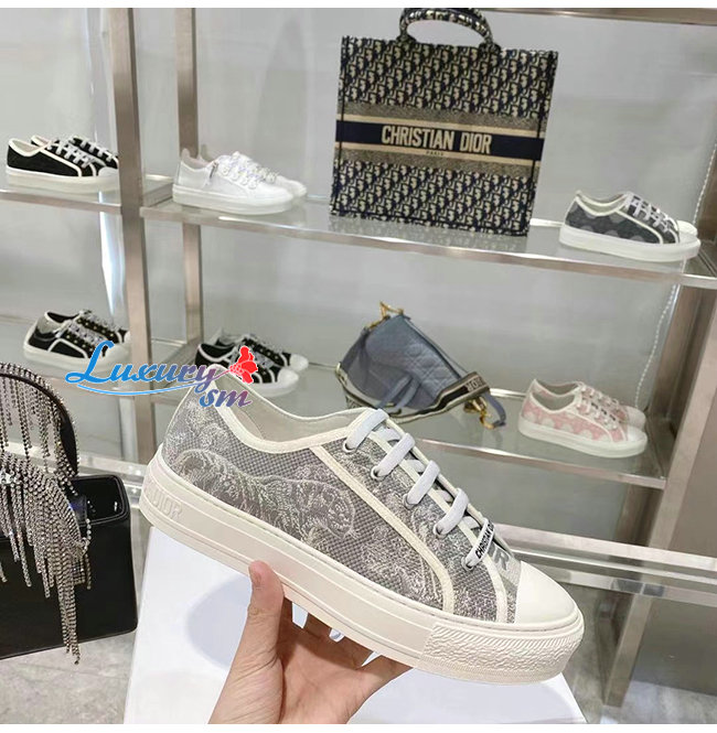 DIOR-KCK211 디올 그레이 Toile de Jouy Reverse 자수 코튼 WALK N DIOR 스니커즈 여성용