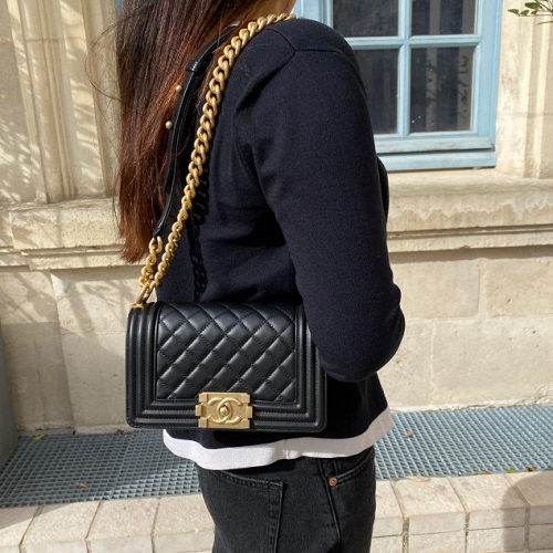 [스페셜오더]CHANEL-A67085 샤넬 블랙 골드 메탈릭 램스킨 골드메탈 보이 샤넬 스몰 플랩백