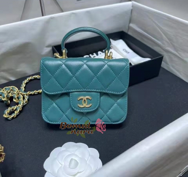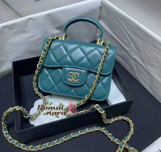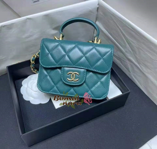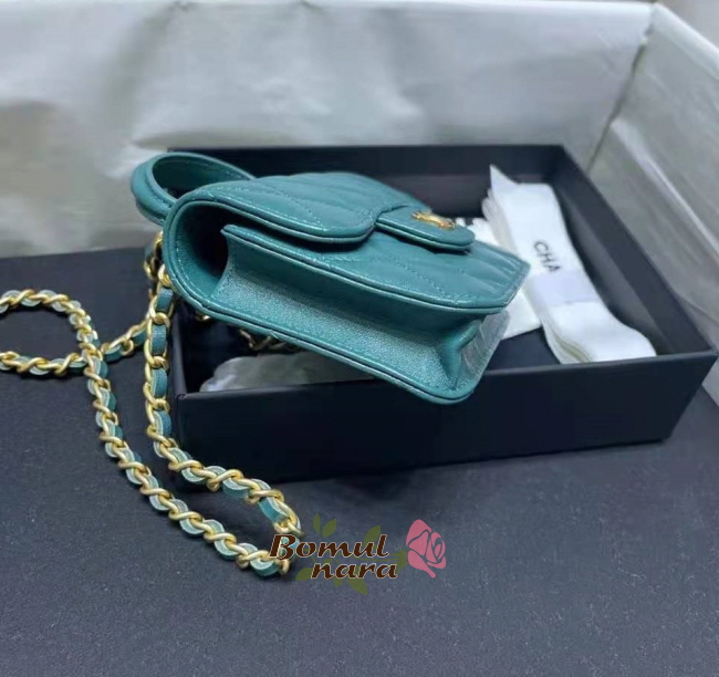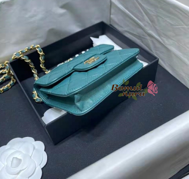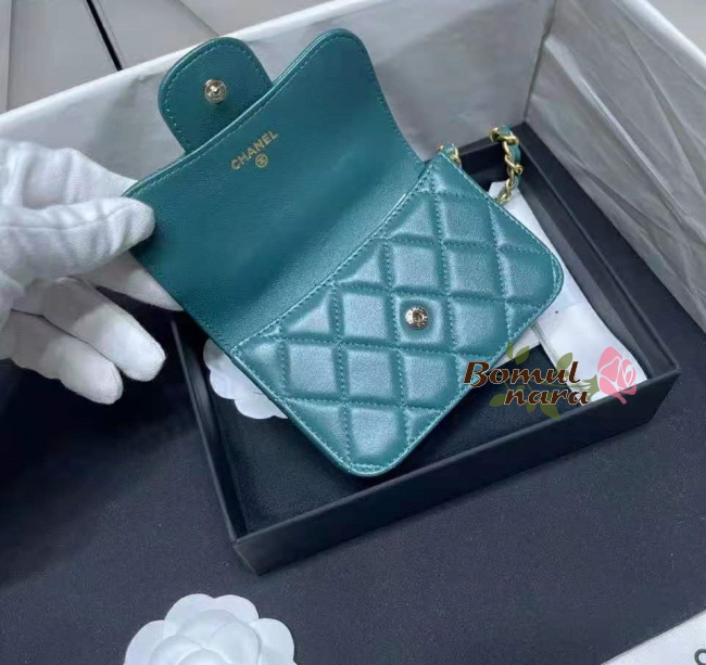 [스페셜오더]CHANEL-AP2200 샤넬 그린 램스킨 골드 체인 플랩 동전 지갑