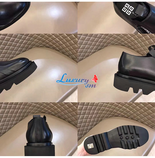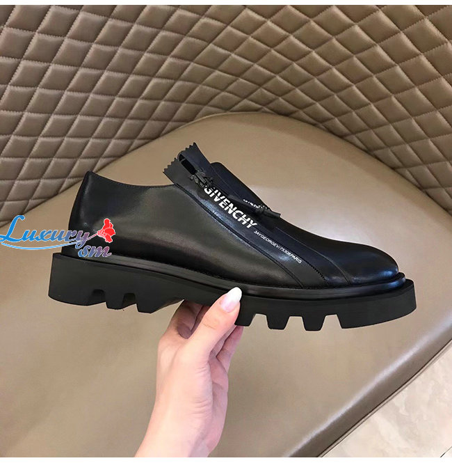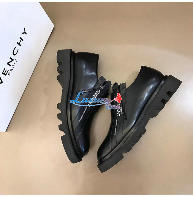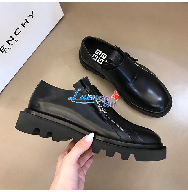 GIVENCHY-BH1030H 지방시 블랙 송아지 가죽 컴뱃 지퍼 더비 슈즈 남성용