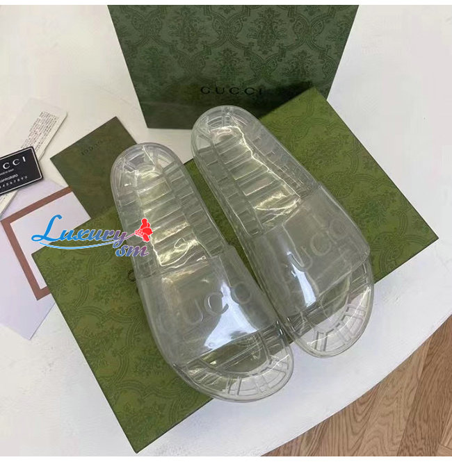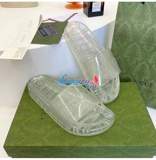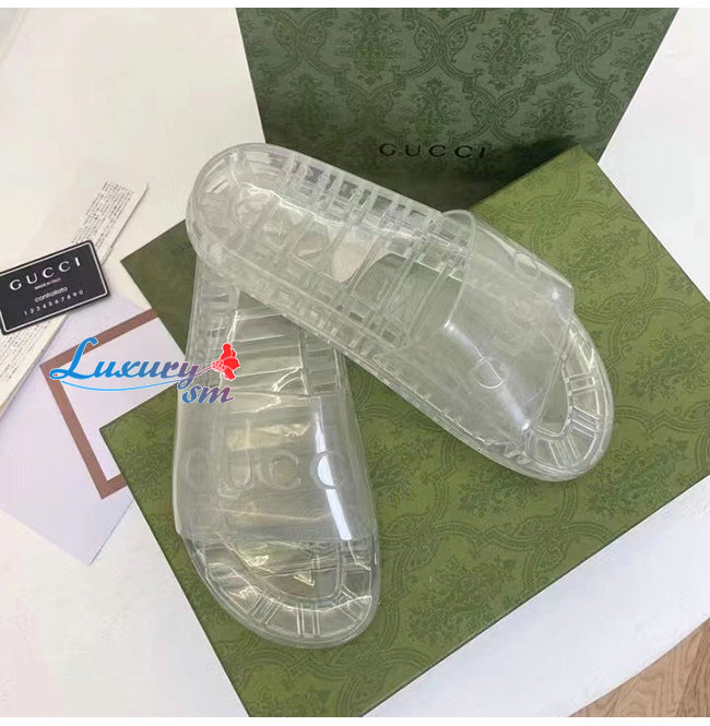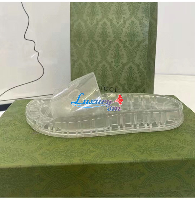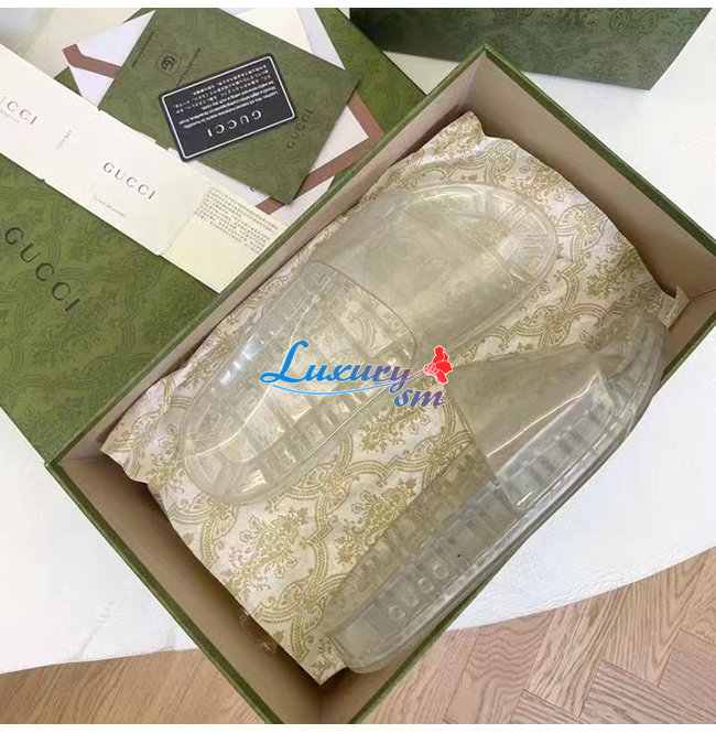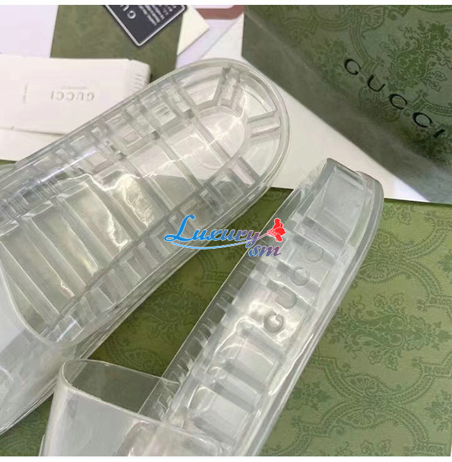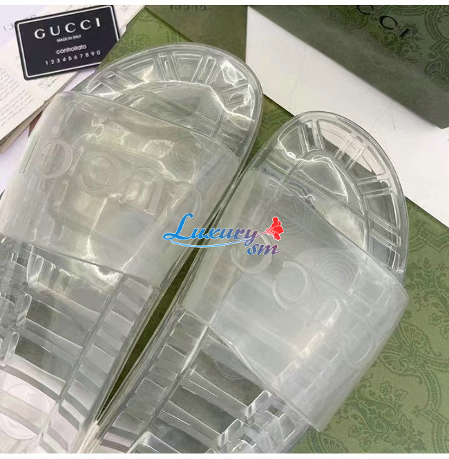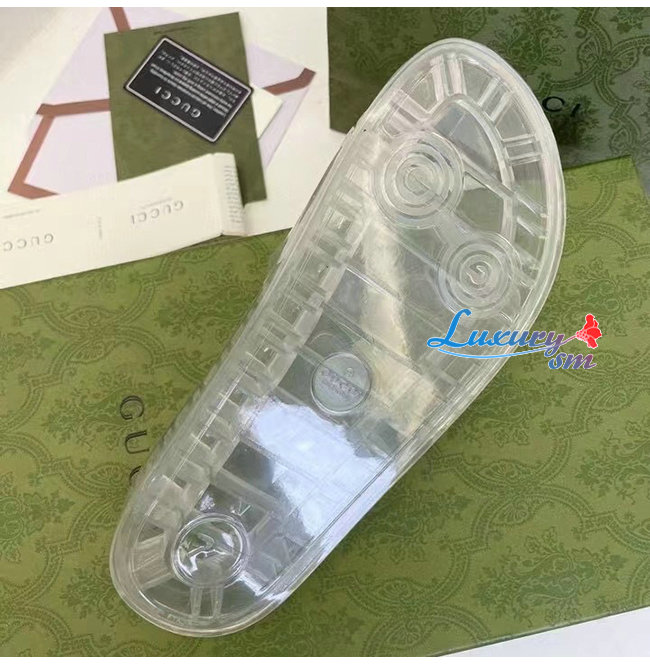 GUCCI-657983 8300 구찌 투명 구찌 로고 장식 슬라이드 샌들 남여공용