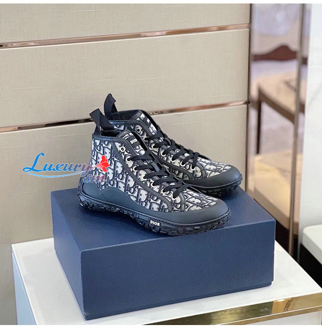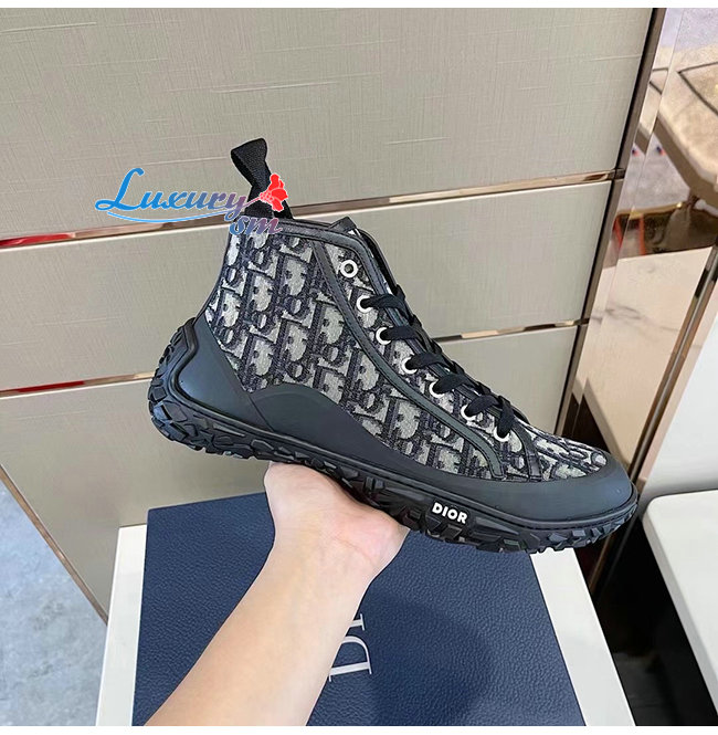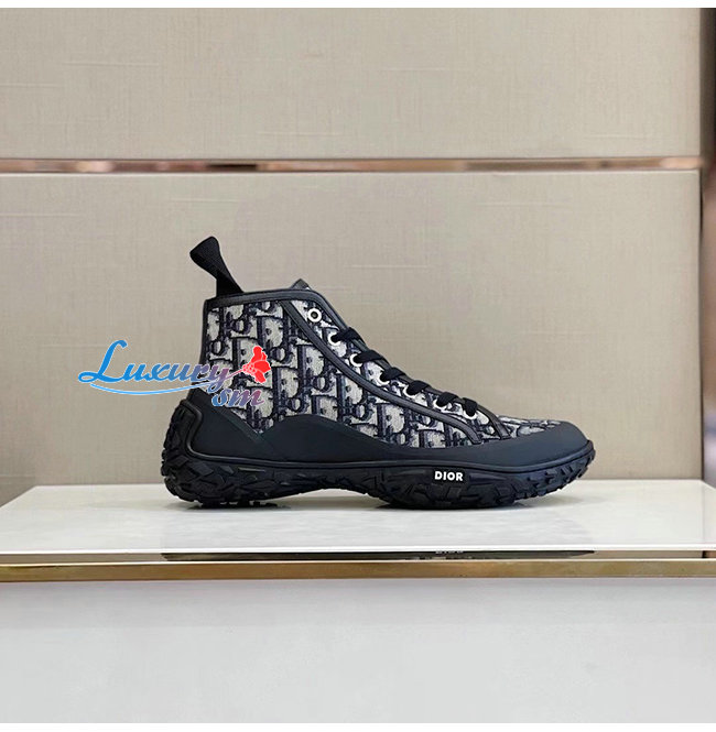 DIOR-3SH131 디올 블랙 Dior Oblique 자카드 B28 하이탑 스니커즈 남성용