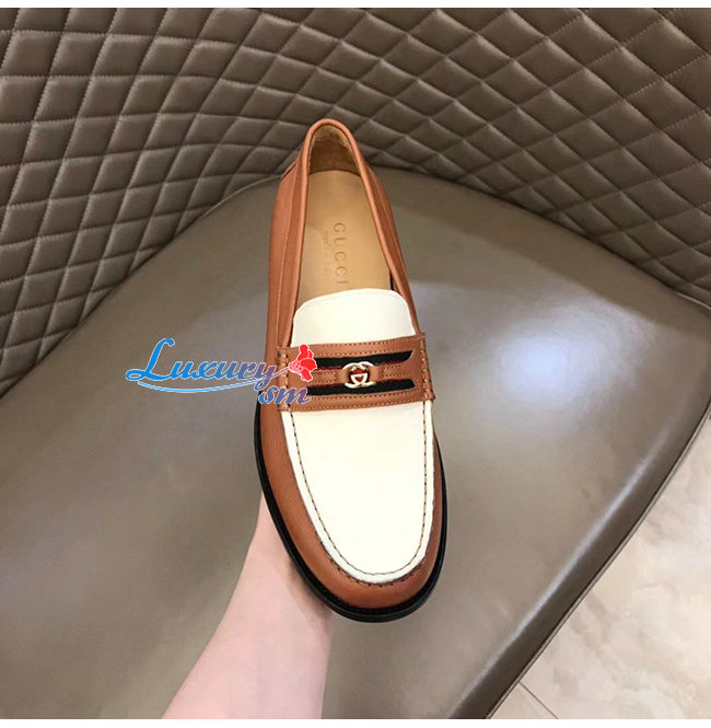 [스페셜오더]GUCCI-644724 2261 구찌 브라운 가죽 더블 G 장식 로퍼