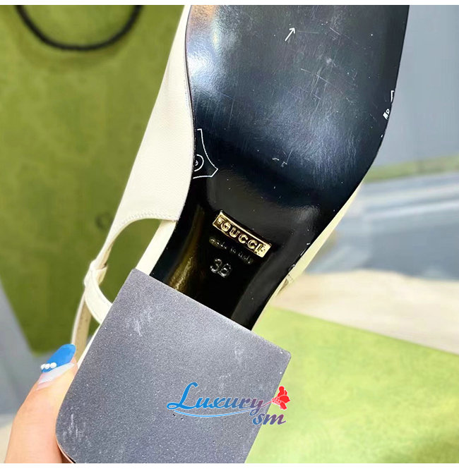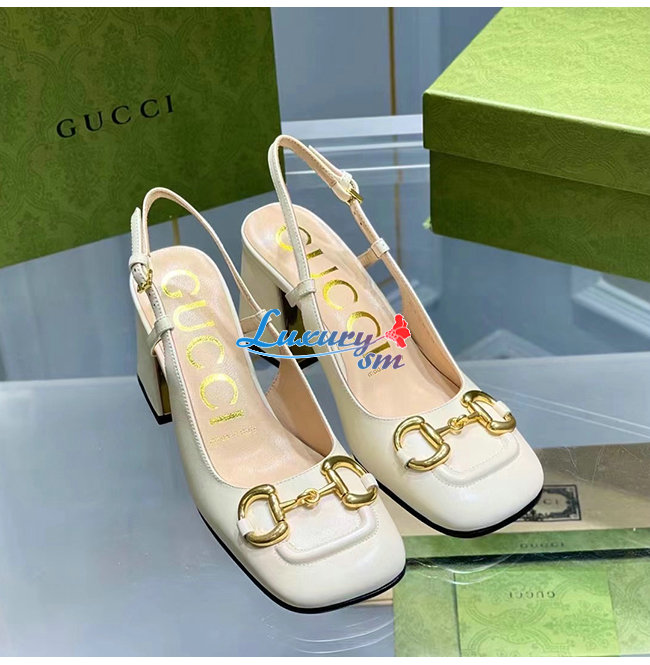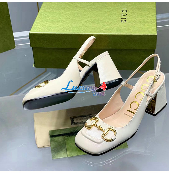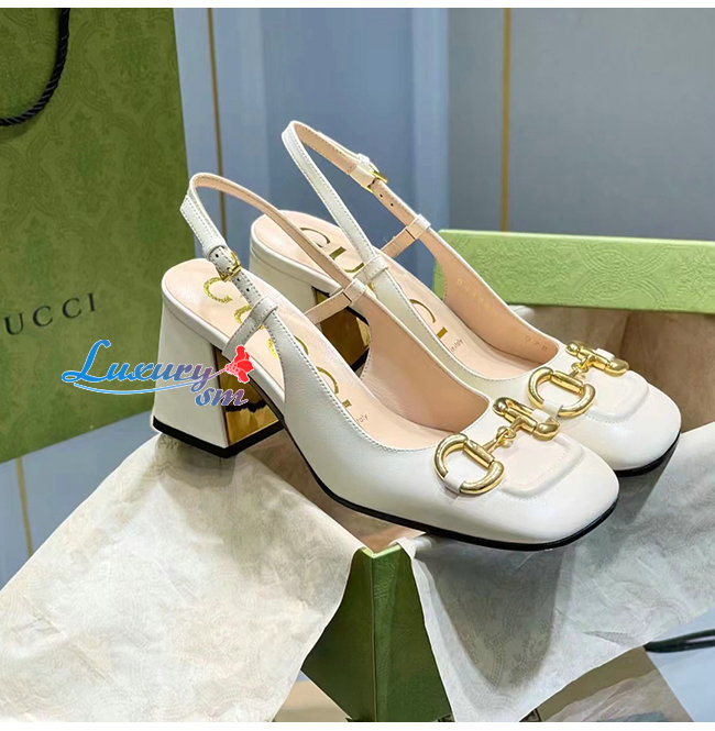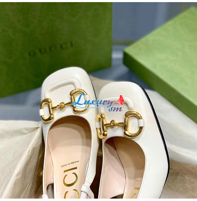 GUCCI-643892 9022 구찌 화이트 가죽 홀스빗 미드힐 슬링백