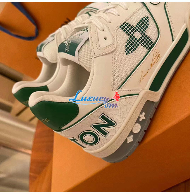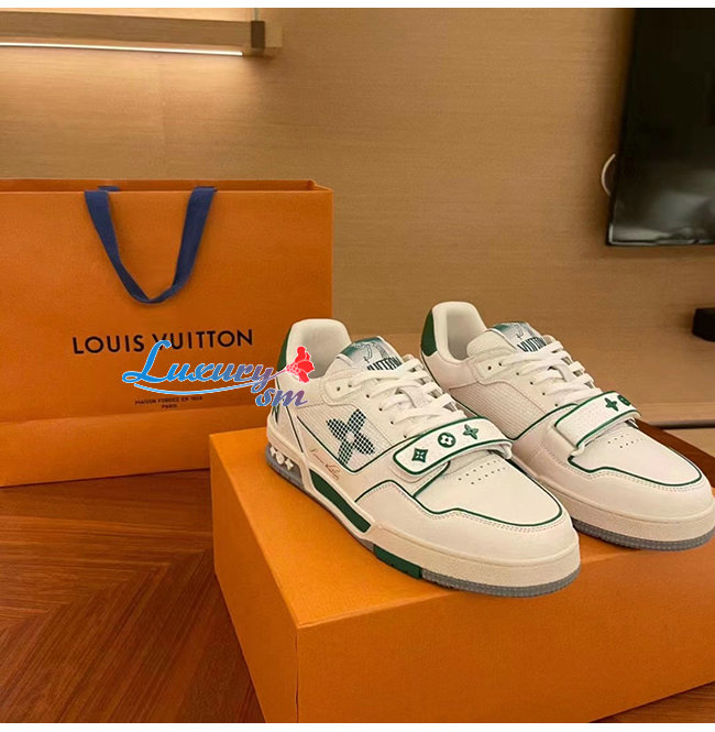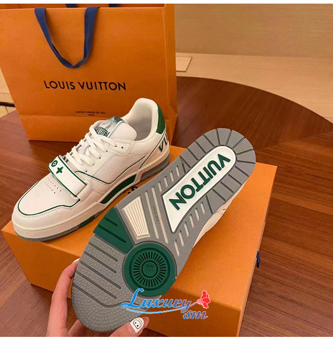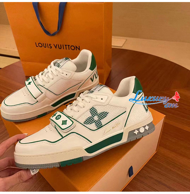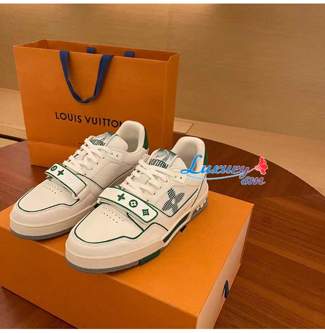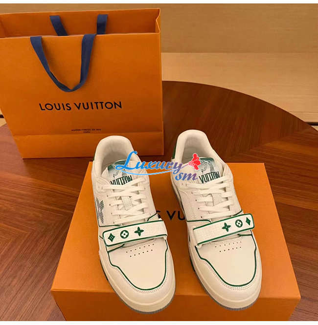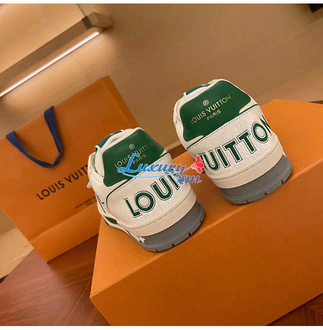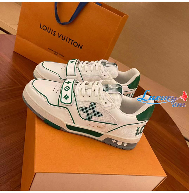[스페셜오더]LOUIS VUITTON-1A98UZ 루이비통 화이트/그린 송아지 가죽 LV 트레이너 스니커즈 남여공용