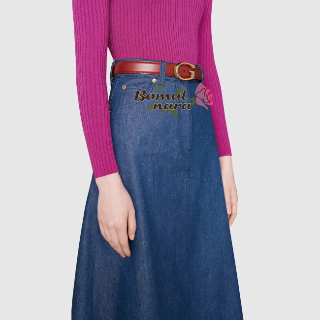G 버클이 세팅된 씬 레더 벨트.