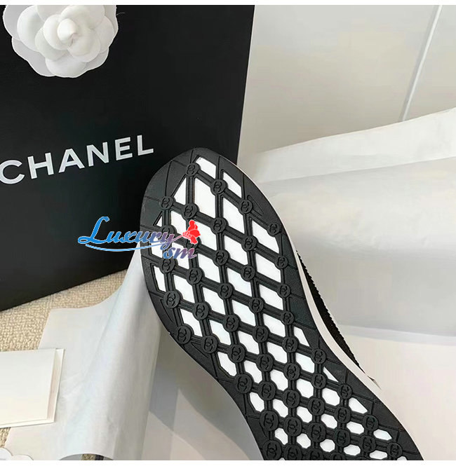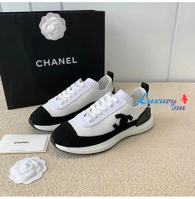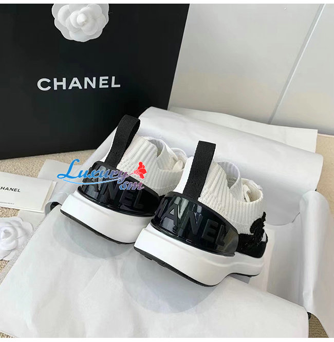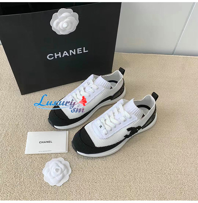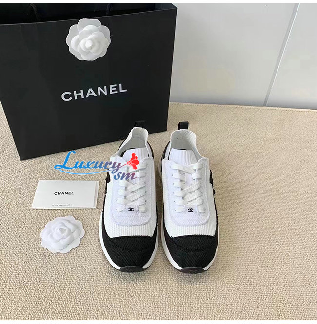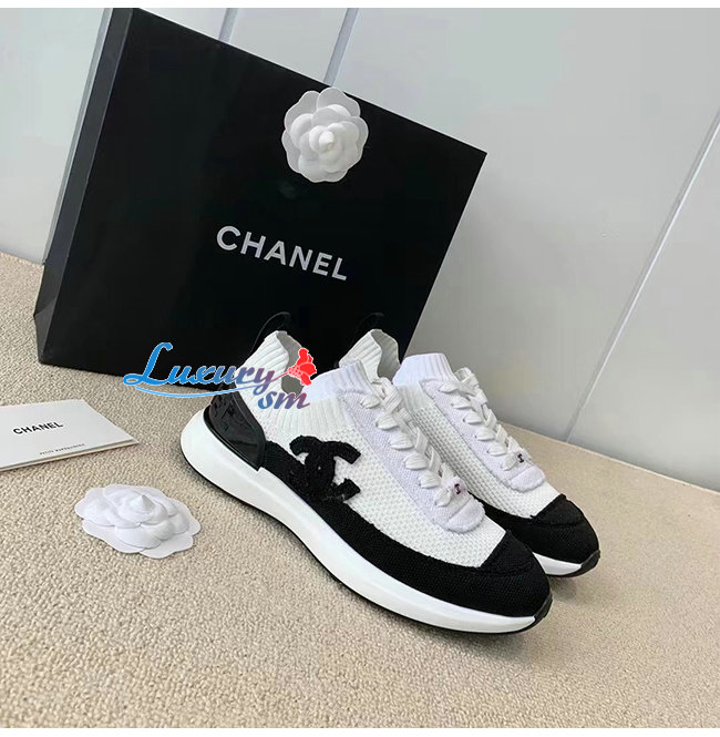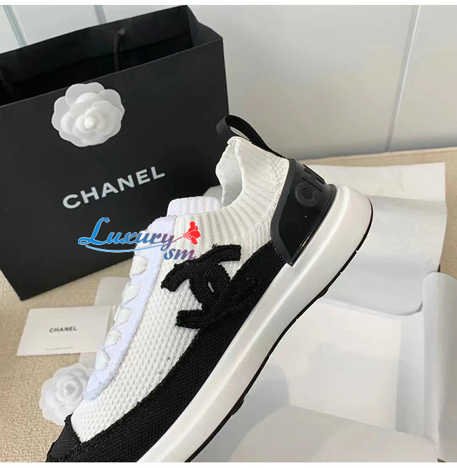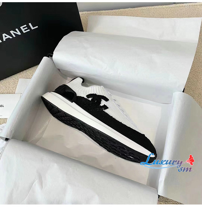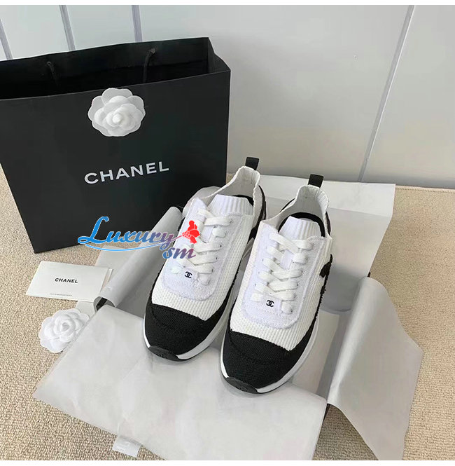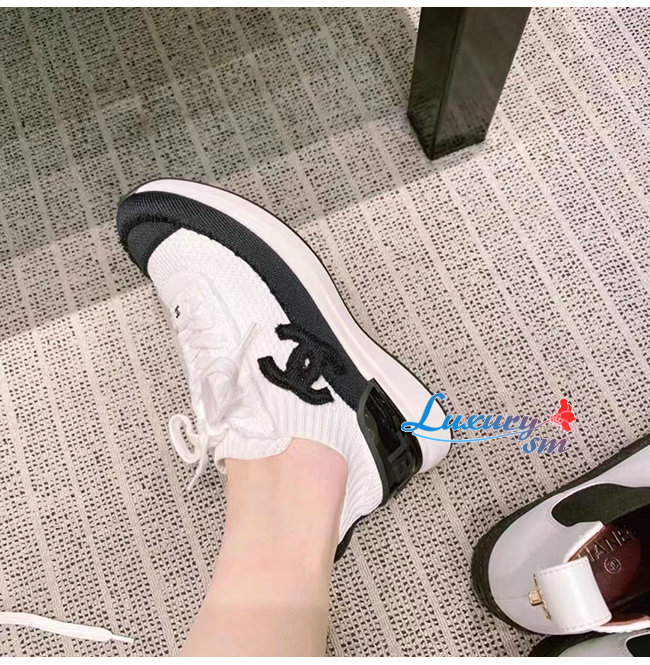 CHANEL-G38332 샤넬 화이트/블랙 니트 스니커즈 여성용