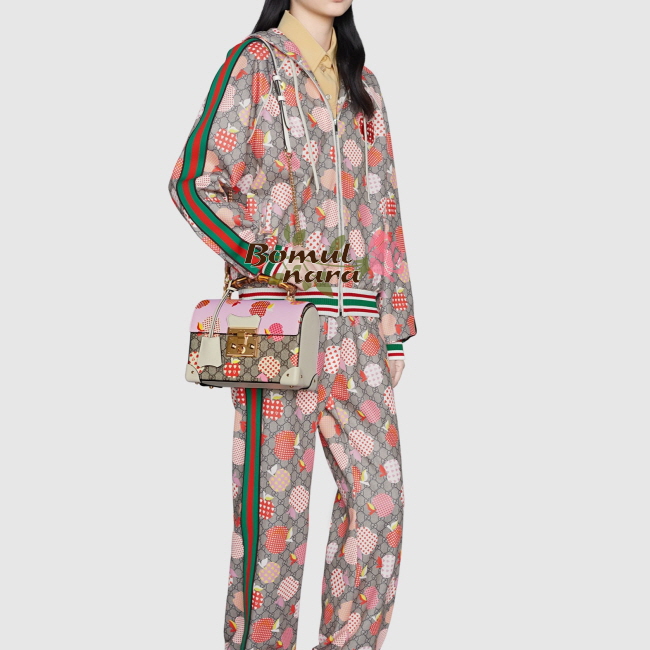 GG 애플 프린트 수프림 캔버스 / 핑크&화이트 가죽 트리밍
