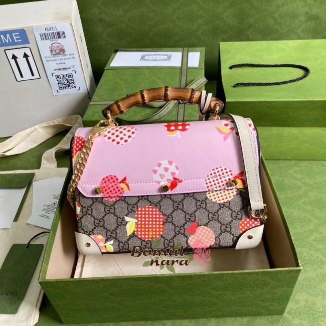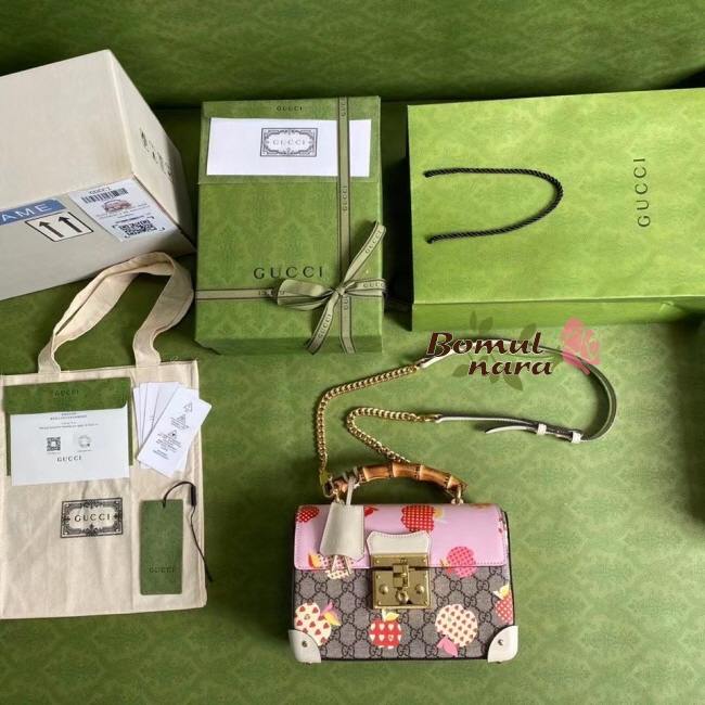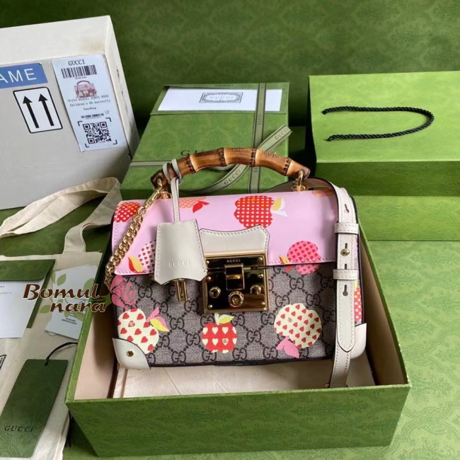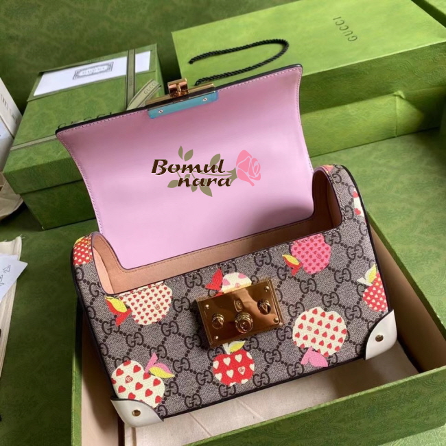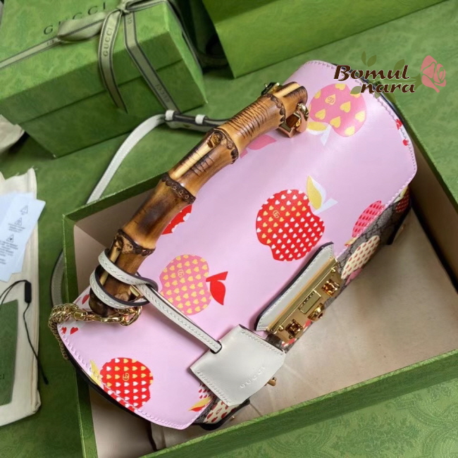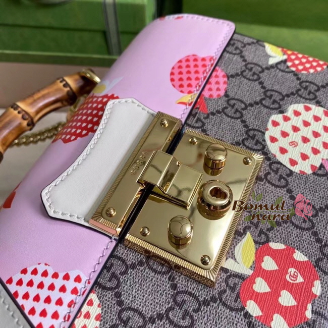 [스페셜오더]GUCCI-603221 8646 구찌 [패들락] GG 애플 프린트 스몰 밤부 숄더백