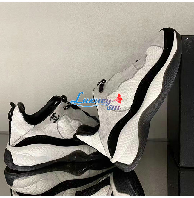 CHANEL-G38292 샤넬 블랙 페브릭 스웨이드 카프스킨 스니커즈 여성용