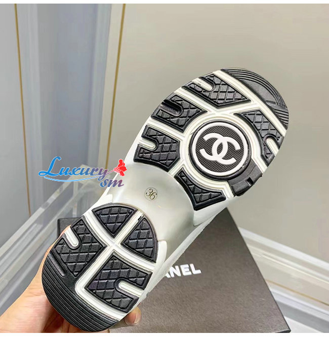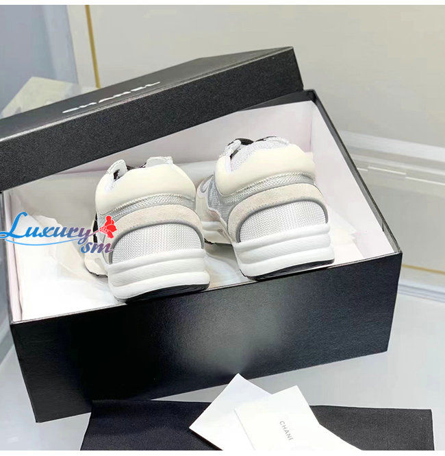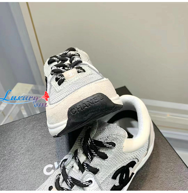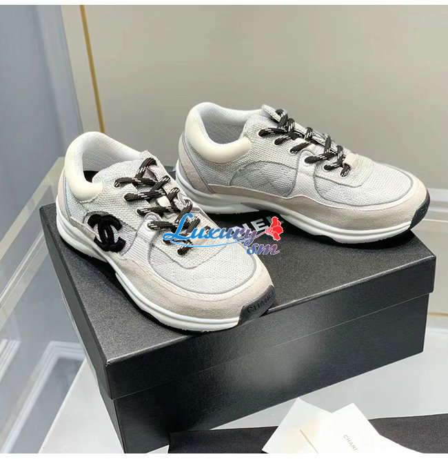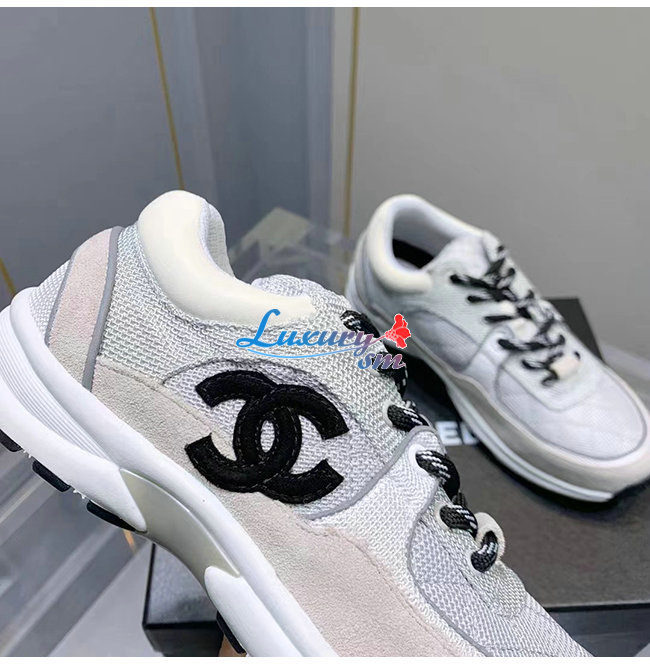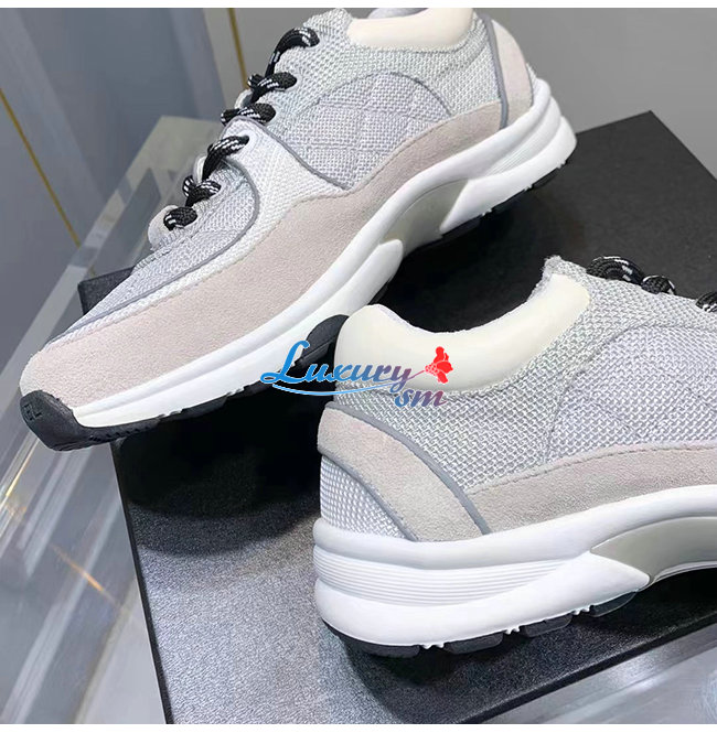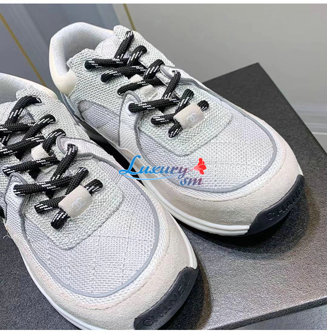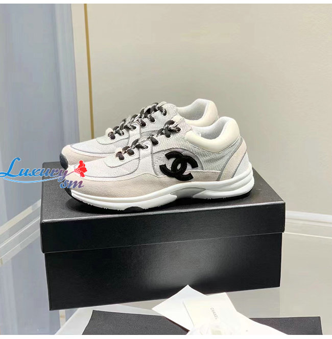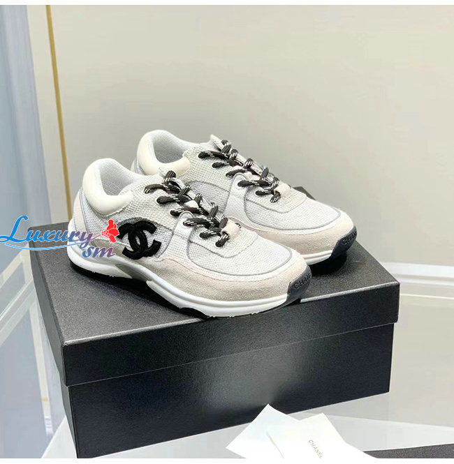 CHANEL-G38299 샤넬 화이트/그레이 페브릭 스웨이드 카프스킨 스니커즈 여성용