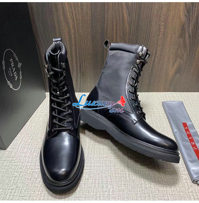 [스페셜오더]PRADA-2UE011 프라다 브랙 브러시드 가죽 나일론 군화