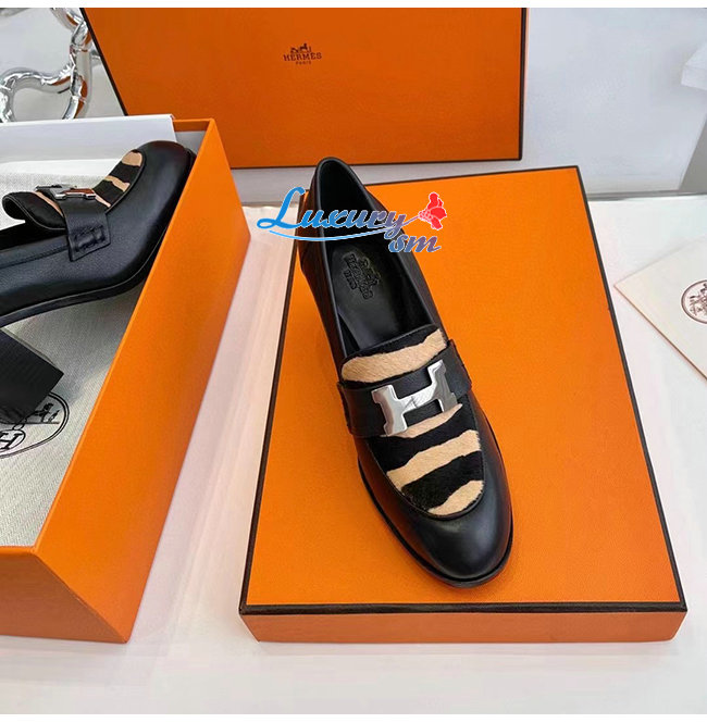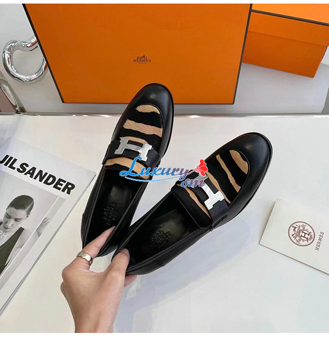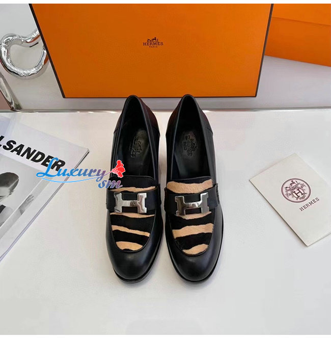 HERMES-H212092Z 에르메스 블랙/화이트 카프스킨 도핀 70 로퍼