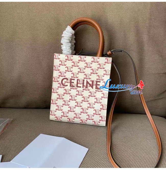 [스페셜오더]CELINE-194372 셀린느 화이트/레드 트리오페 캔버스 미니 버티컬 카바스 백