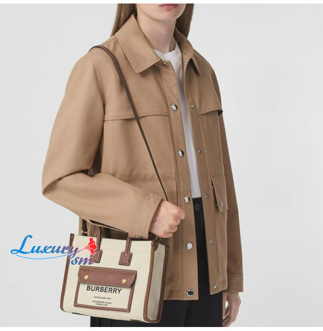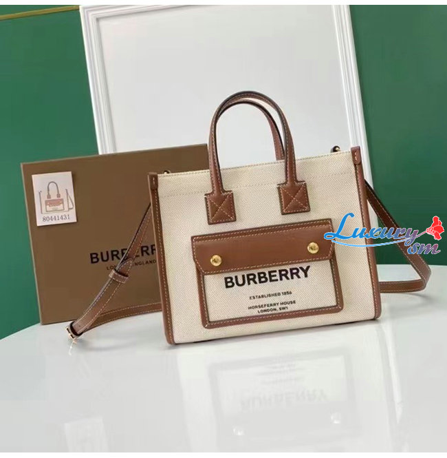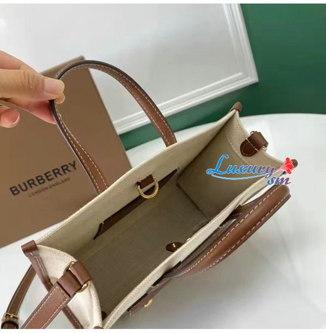 [스페셜오더]BURBERRY-80441431 버버리 탠 미니 투톤 캔버스 레더 프레야 백