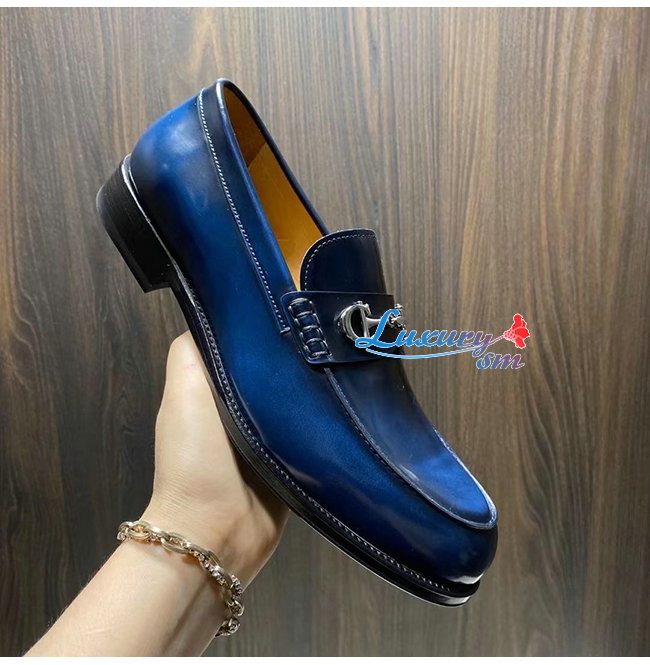 블루 유광 송아지 가죽 위로 슈즈상단의 CD 시