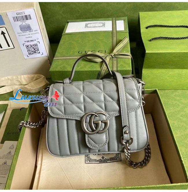 [스페셜오더]GUCCI-583571 1711 구찌 GG 마몽 그레이 가죽 미니 탑 핸들백
