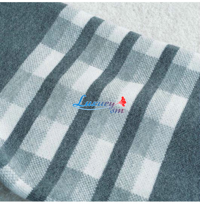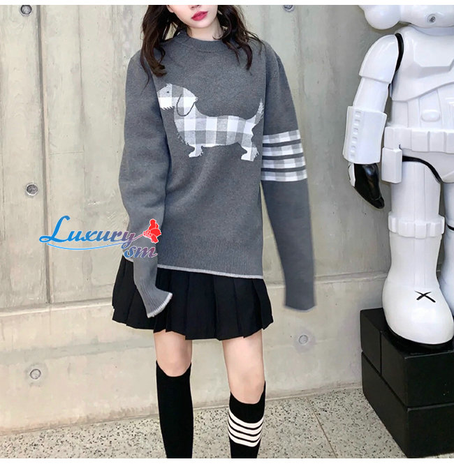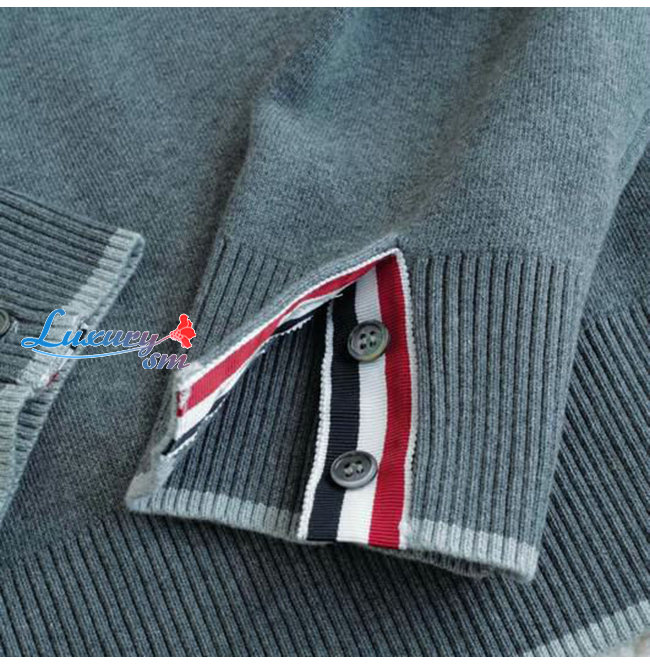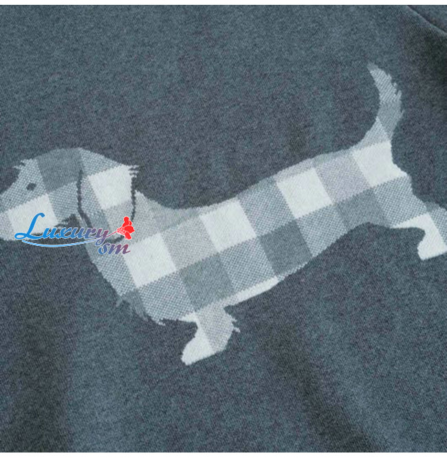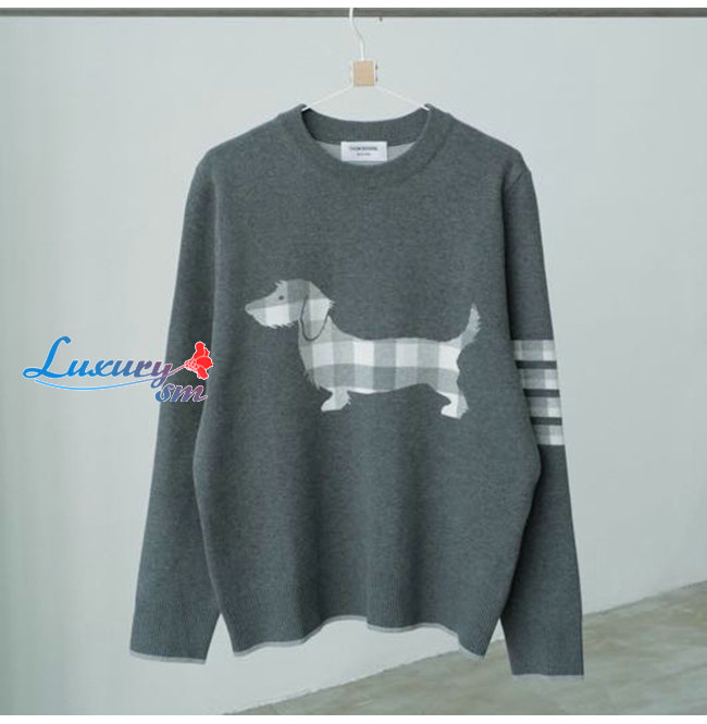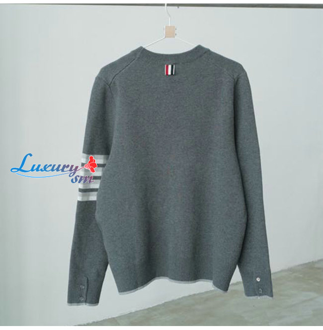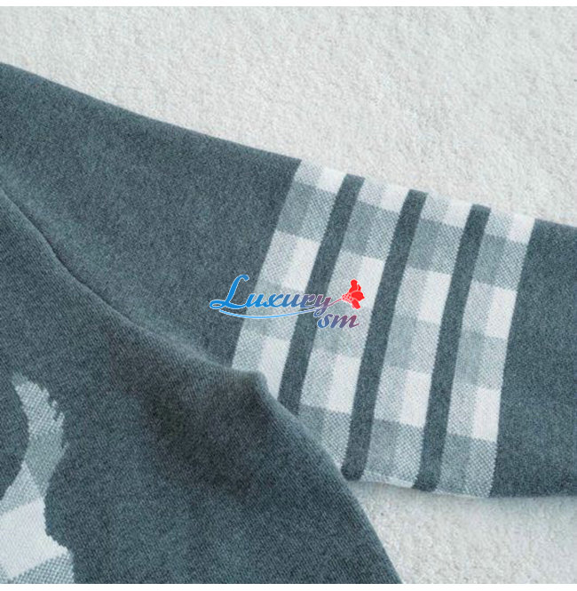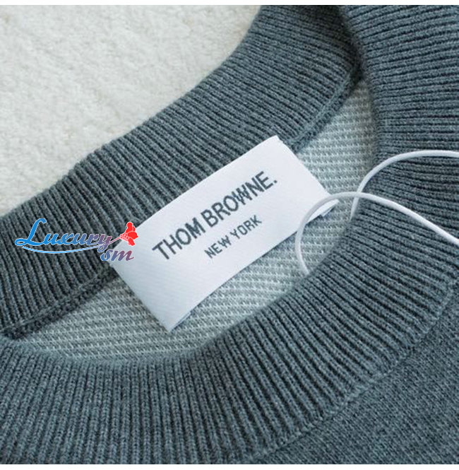 THOM BROWNE-111212 톰 브라운 그레이 니트 코튼 체크 무늬 디테일 스웨터 남여공용