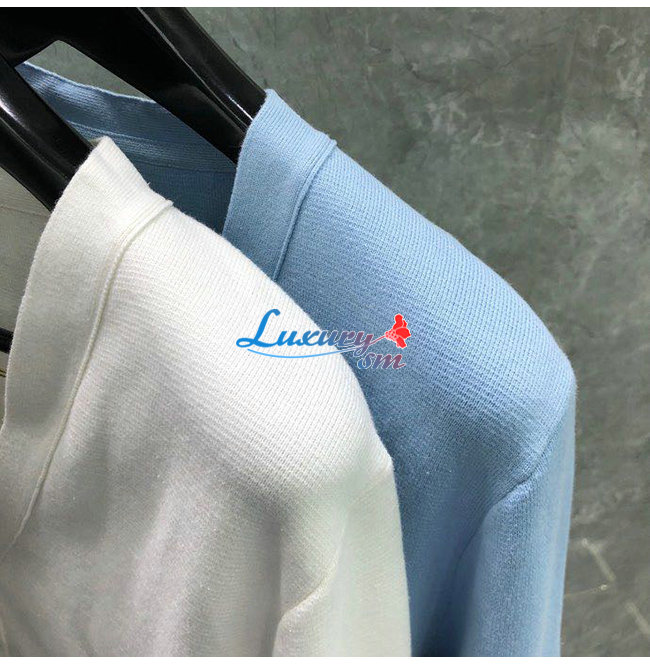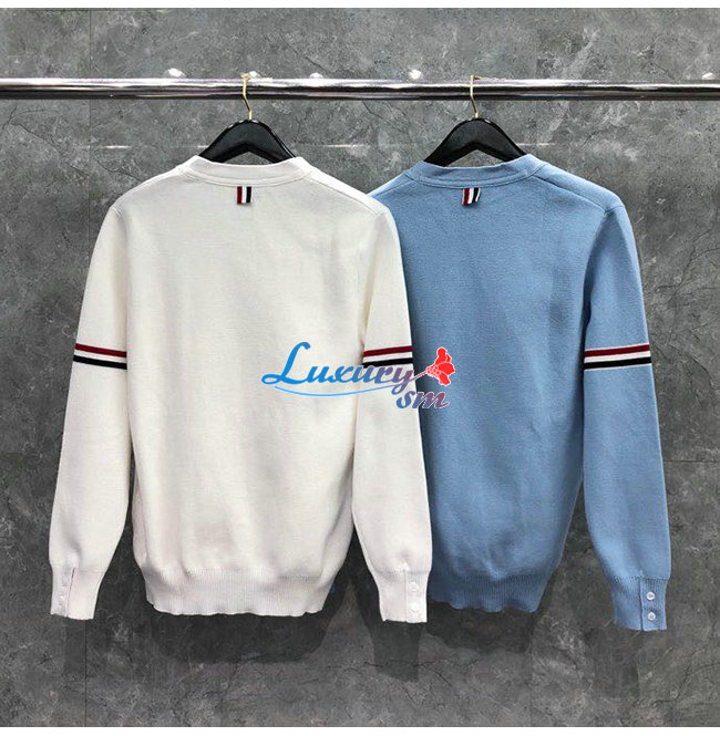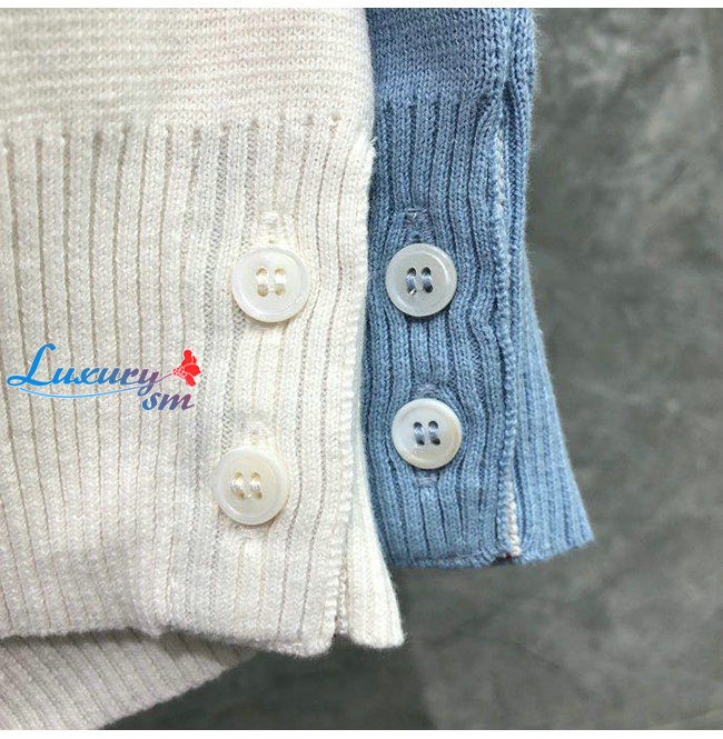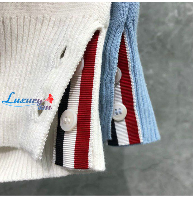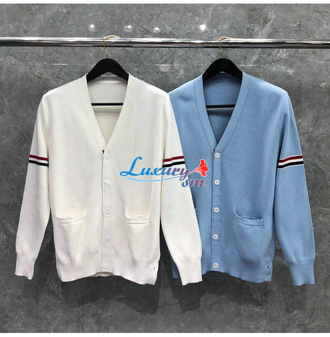 THOM BROWNE-11149 톰 브라운 라이트 블루 니트 코튼 스트라이프 장식 가디건 남성용