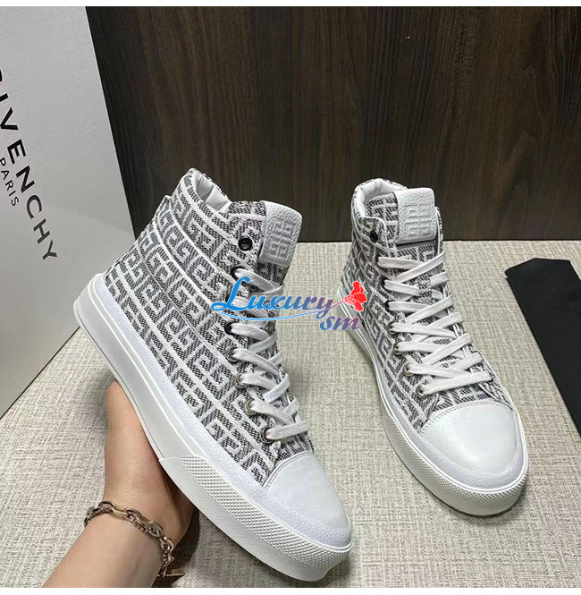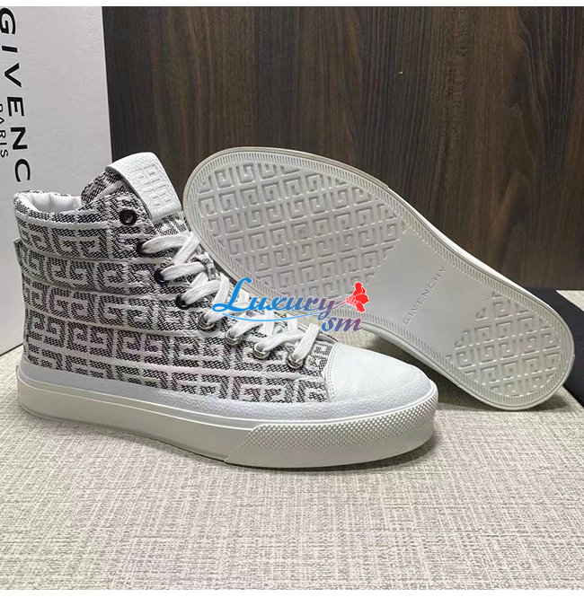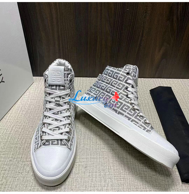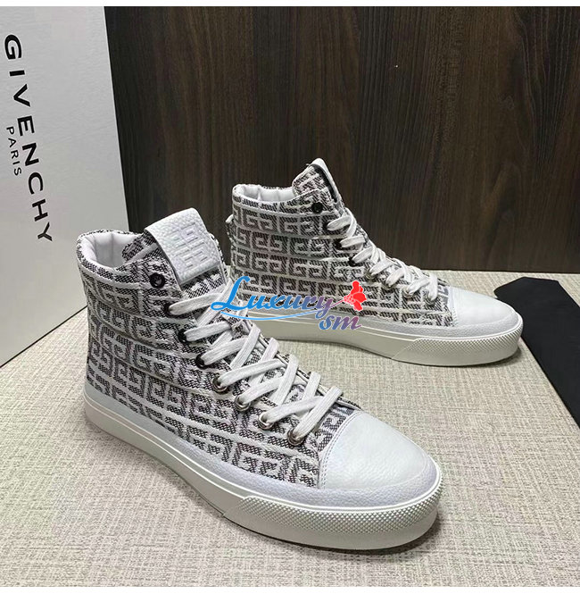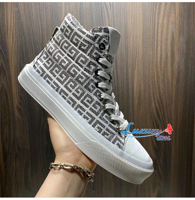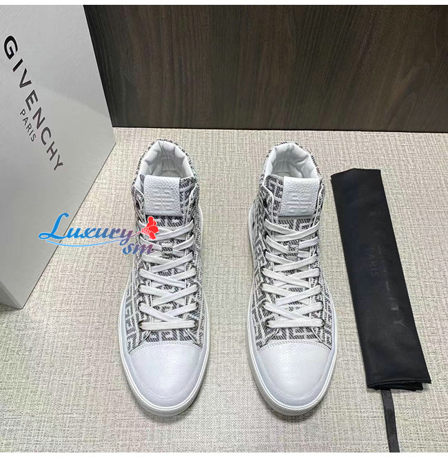 GIVENCHY-BH005LH 지방시 화이트 4G 자카드 시티 하이 탑 스니커즈 남성용