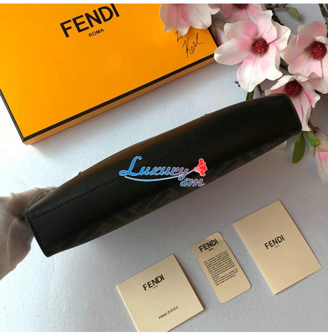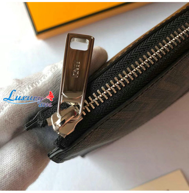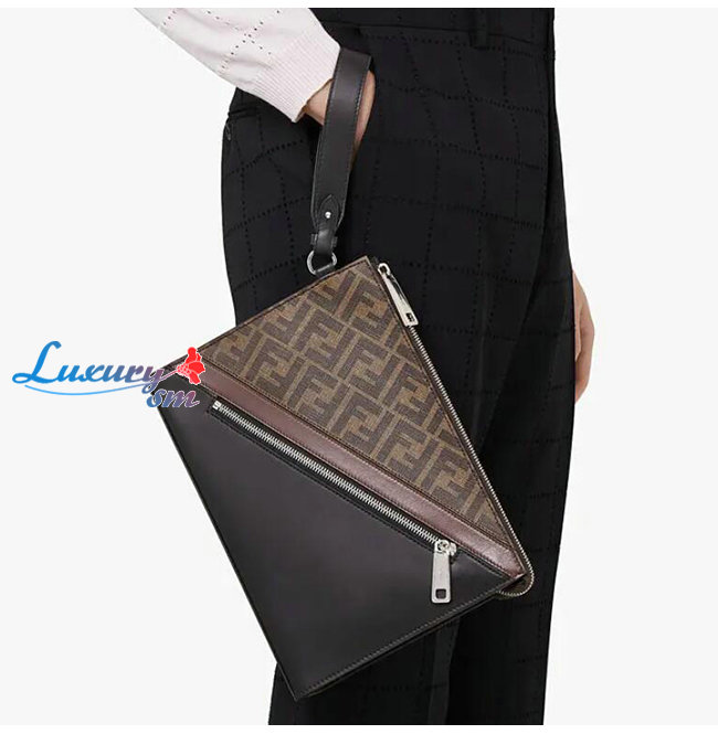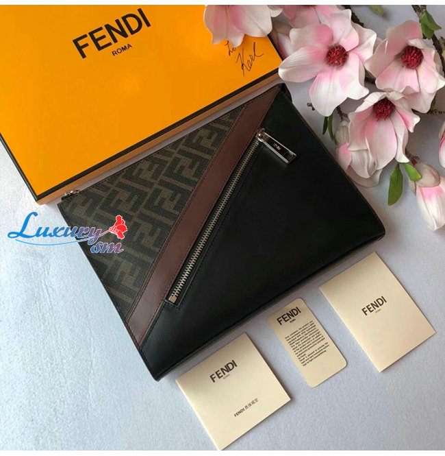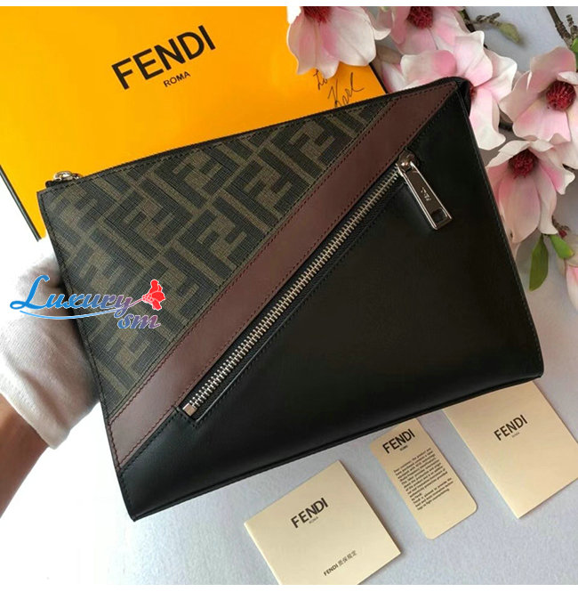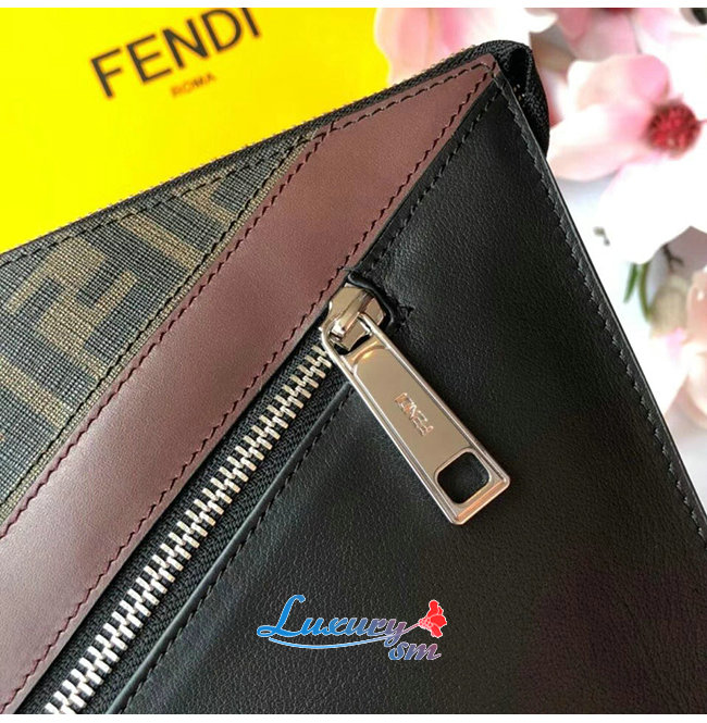 [스페셜오더]FENDI-7VA491 펜디 블랙/브라운 송아지 가죽 더블 F 디테일 플랫 파우치