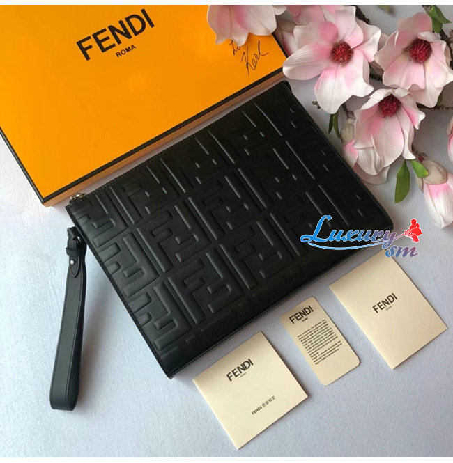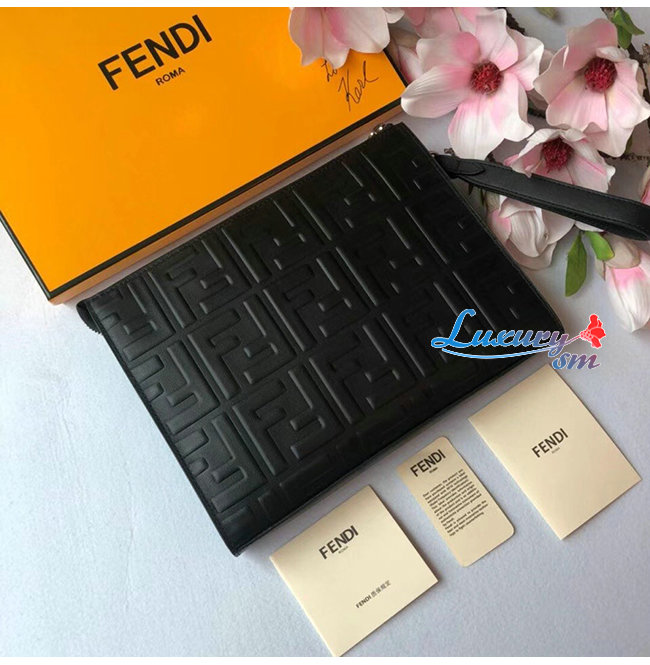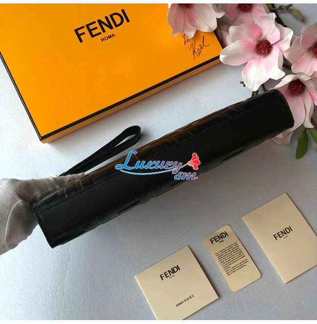 [스페셜오더]FENDI-7VA491 펜디 블랙/브라운 송아지 가죽 더블 F 디테일 플랫 파우치