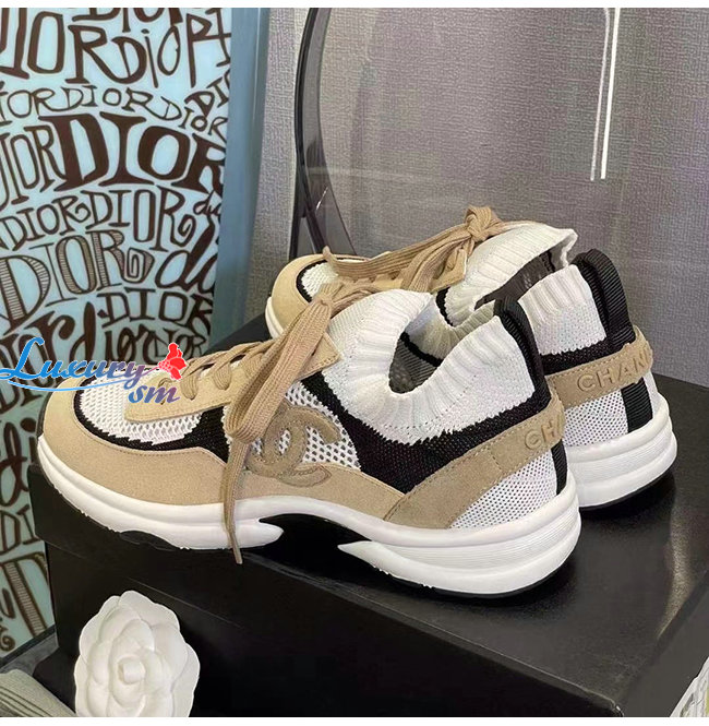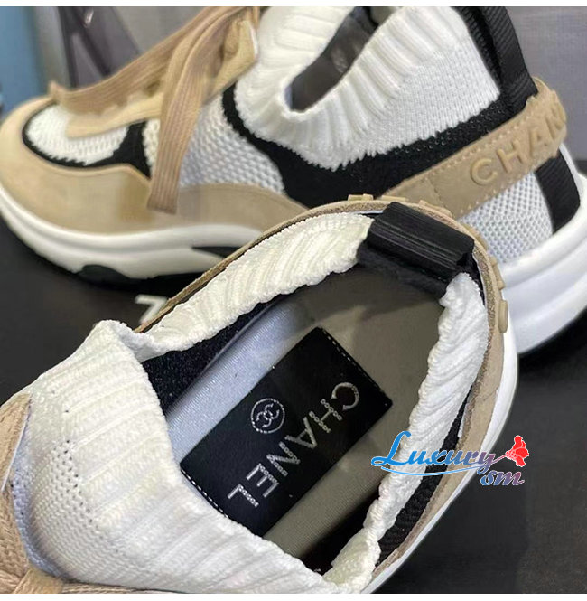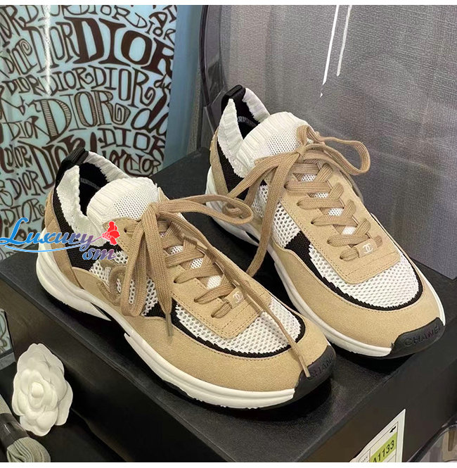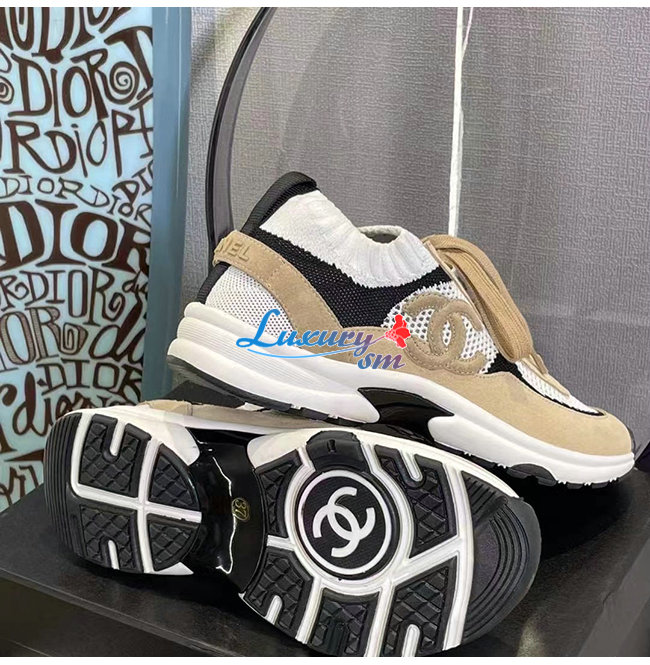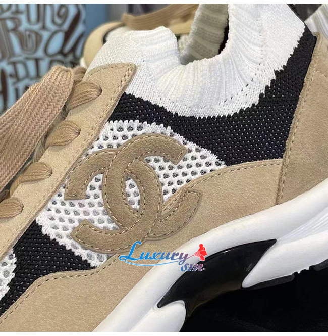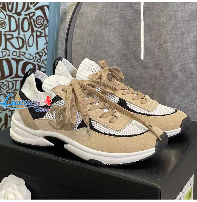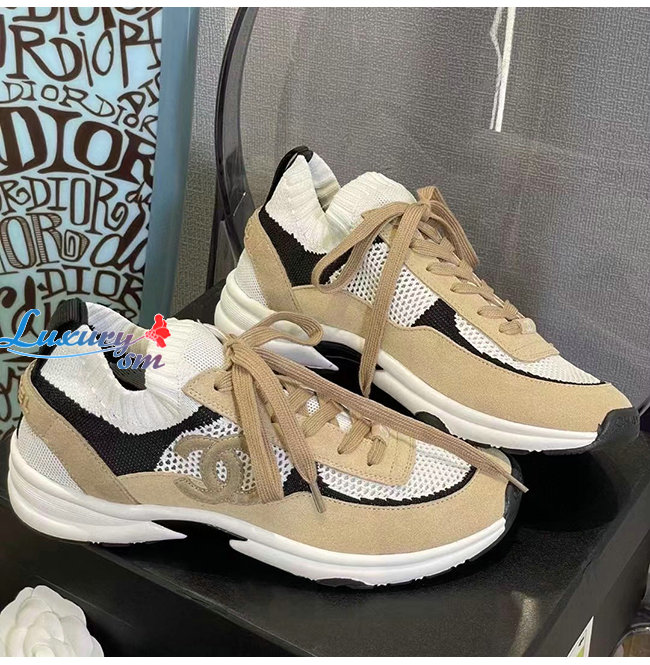 CHANEL-G38750 샤넬 베이지 스웨이드 카프스킨 스니커즈 여성용