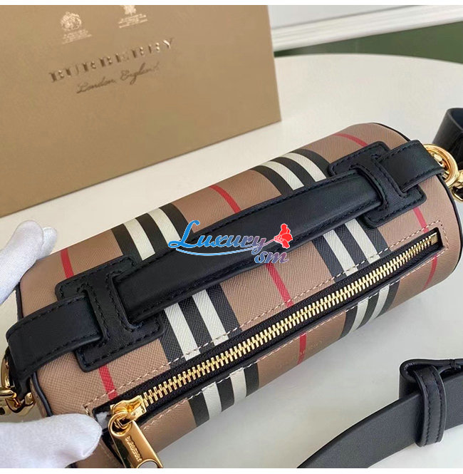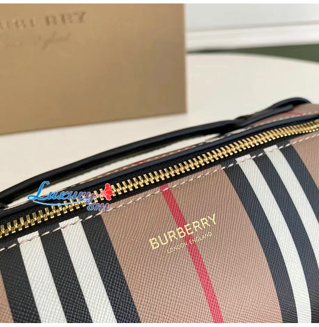 [스페셜오더]BURBERRY-80304561 버버리 베이지 아이콘 스트라이프 E-캔버스 레더 배럴 백