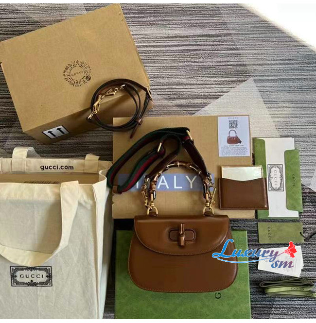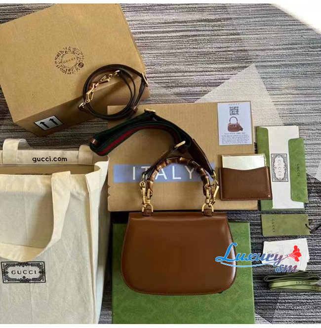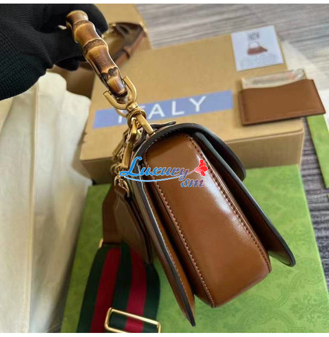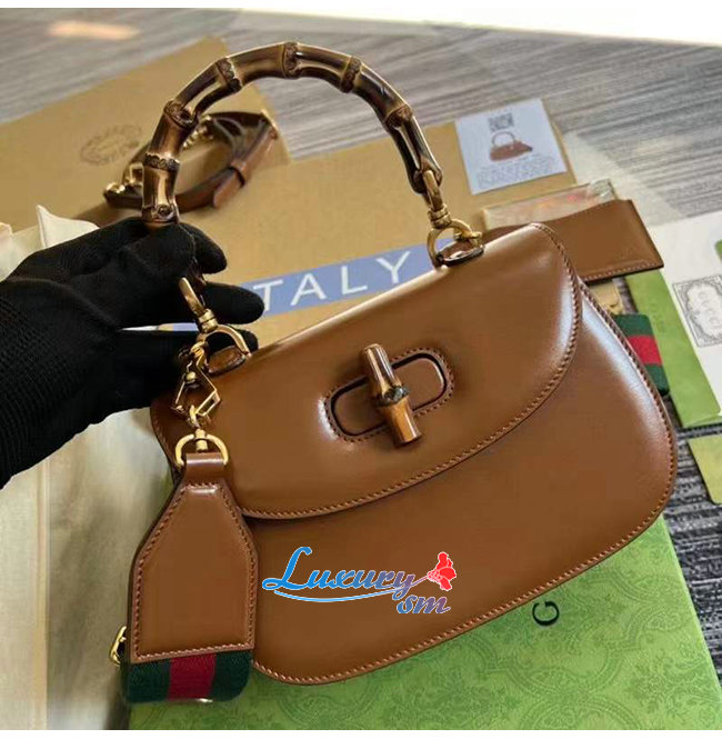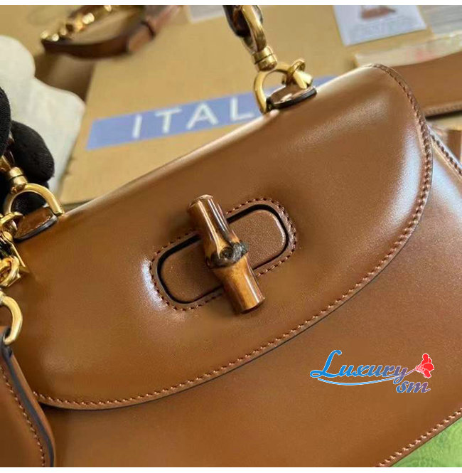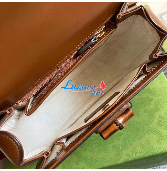 [스페셜오더]GUCCI-675797 2579 구찌 브라운 가죽 뱀부 스몰 탑 핸들백