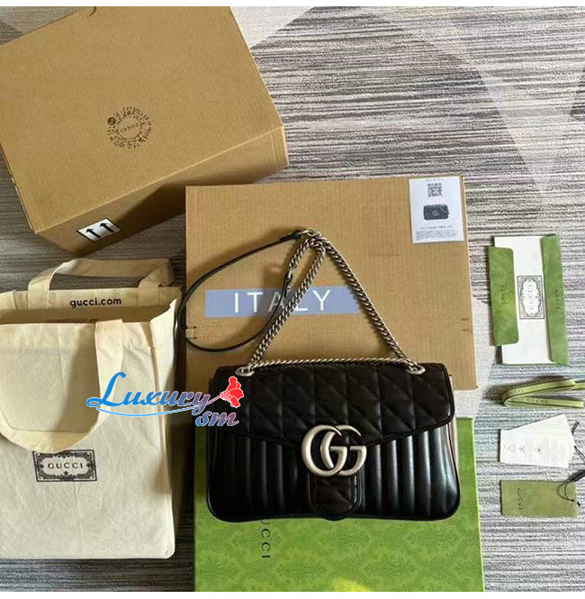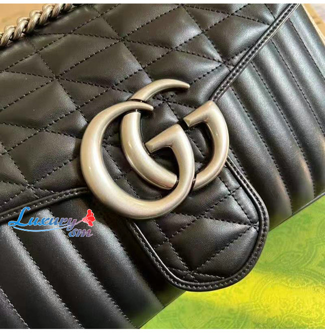 [스페셜오더]GUCCI-443496 1000 구찌 GG 마몽 블랙 가죽 미디엄 숄더백