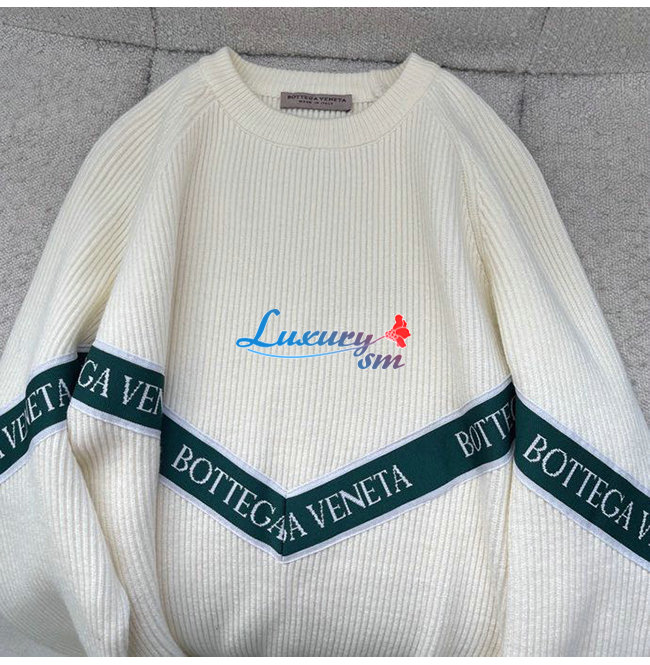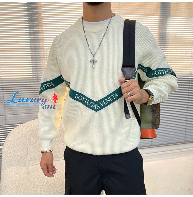 BOTTEGA VENETA-12212 보테가 베네타 화이트 니트 코튼 스트라이프 장식 스웨터 남성용
