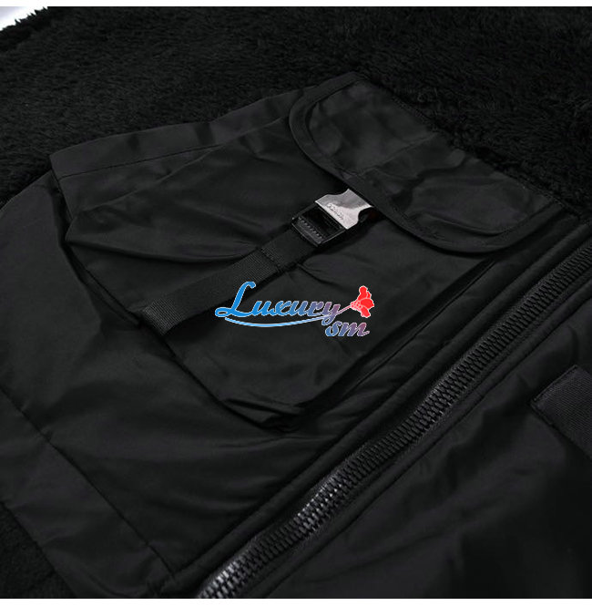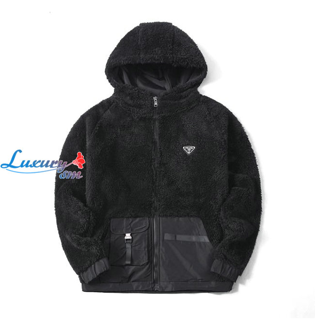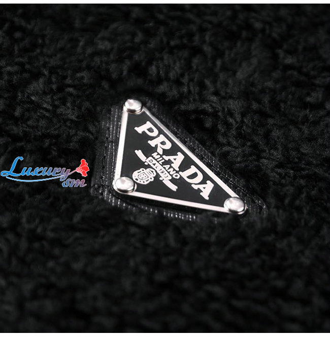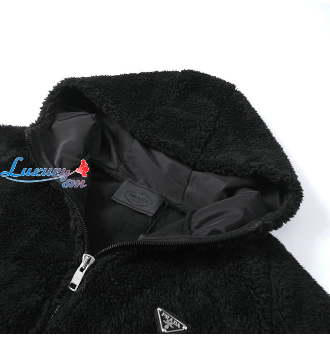 PRADA-122212 프라다 블랙 시어링 트라이앵글 로고 후드 쟈켓 남여공용
